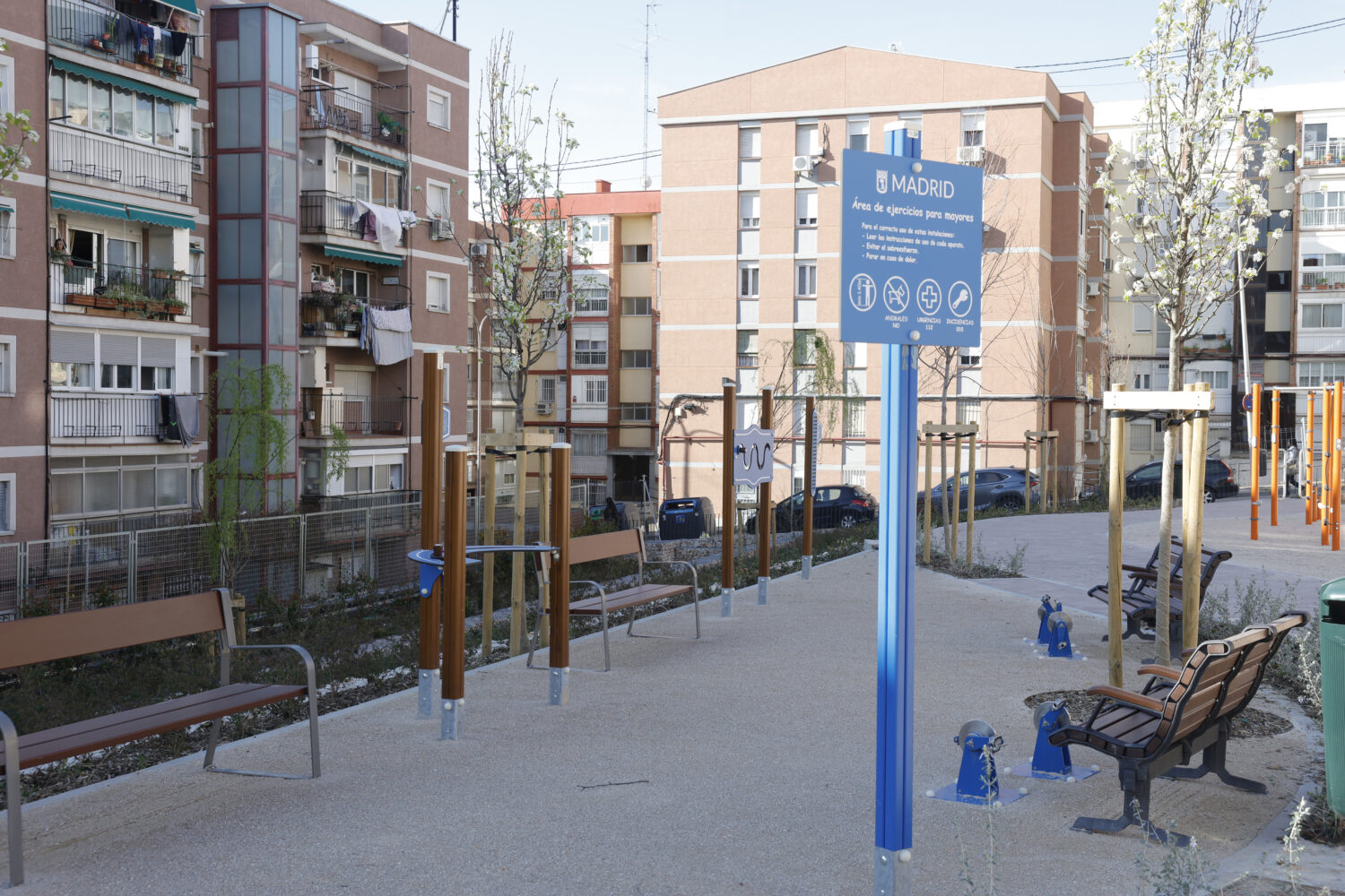 La transformación de esta área en una nueva zona verde contribuye a mejorar la calidad ambiental del entorno y amplía la red de espacios de estancia y actividad al aire libre disponibles para los vecinos del distrito de Ciudad Lineal. /