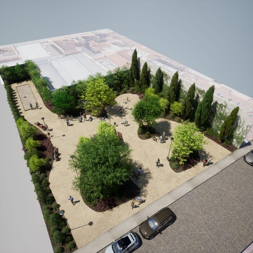 La zona verde cumplirá dos funciones principales: dotar a las áreas colindantes de un espacio de recreo para los vecinos y actuar como filtro acústico para la nueva edificación prevista.