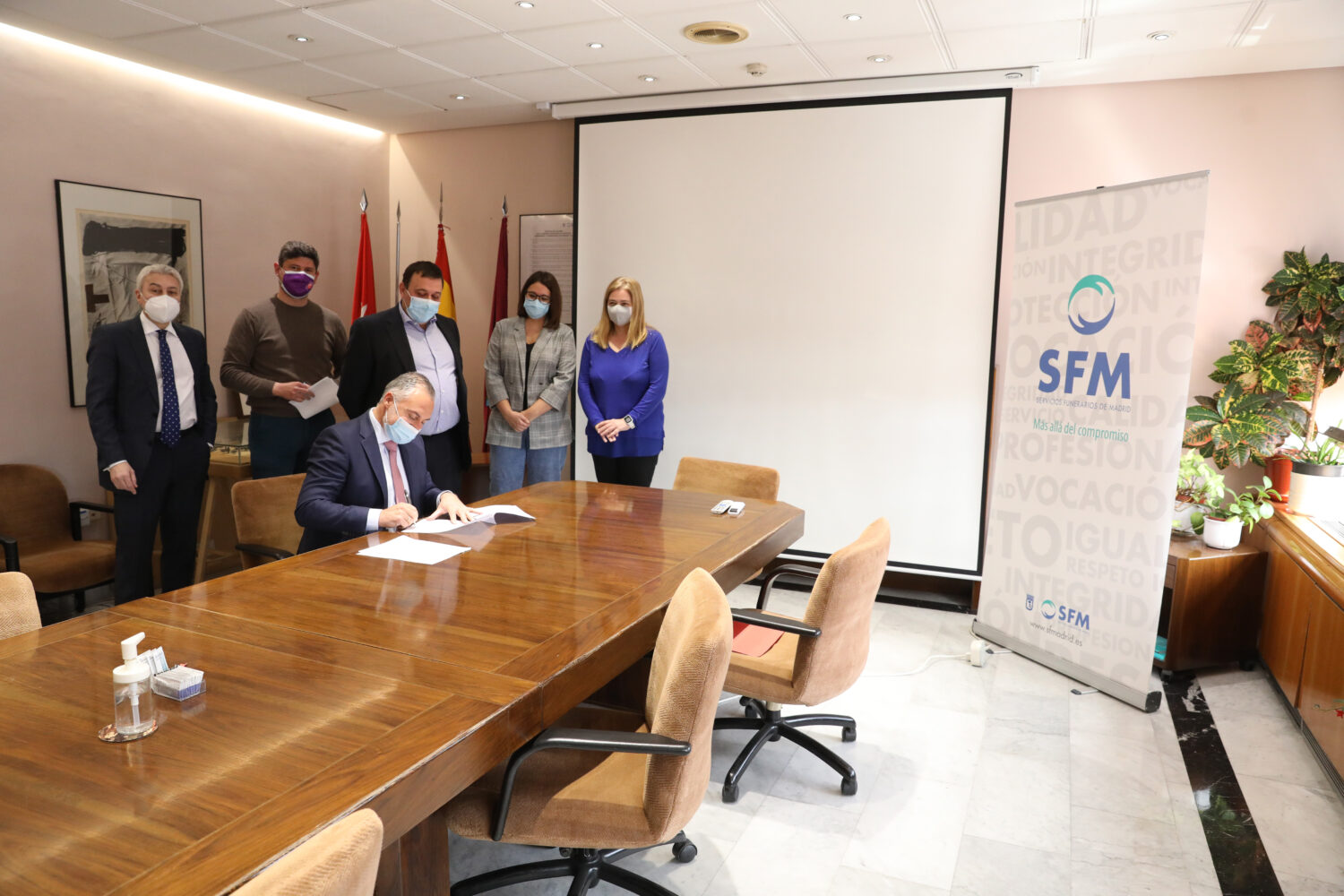 La delegada de Seguridad y Emergencias y presidenta de Servicios Funerarios Madrid (SFM), Inmaculada Sanz, ha asistido esta mañana a la firma de un nuevo acuerdo para la mejora de empleo suscrito entre la Dirección de la funeraria municipal y su Comité de Empresa. El documento, que pone de manifiesto el reconocimiento a la labor de la plantilla de SFM y su compromiso con el servicio público, tendrá vigencia hasta finales de 2022.