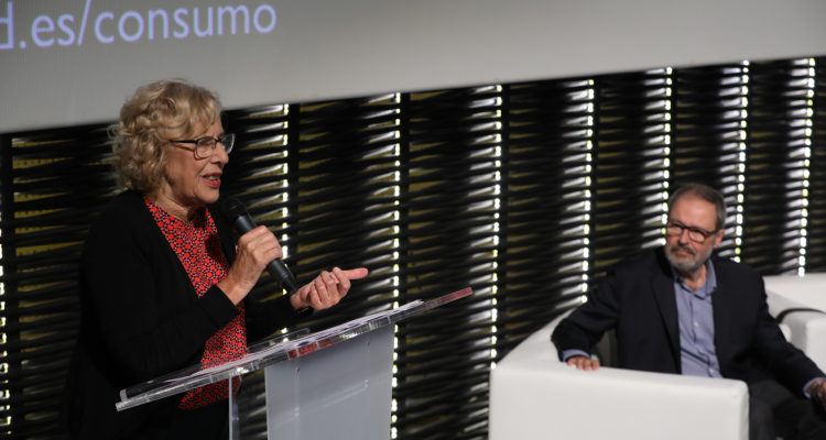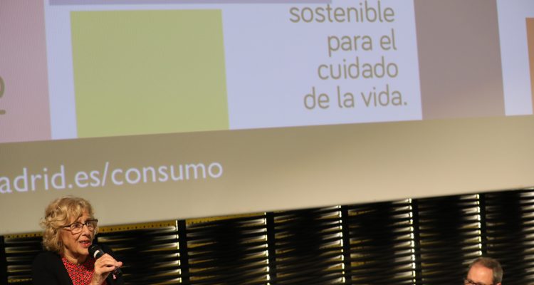 La alcaldesa de Madrid, Manuela Carmena, y el delegado del Área de Salud, Seguridad y Emergencias, Javier Barbero, han asistido esta tarde a la apertura del encuentro, que se desarrollará días 19, 20 y 21 de octubre en la sala Azcona de Cineteca Madrid, en Matadero, bajo el lema “Consumo sostenible para el cuidado de la vida”.