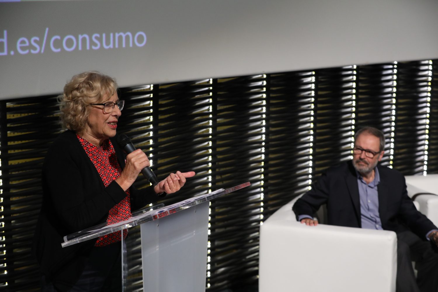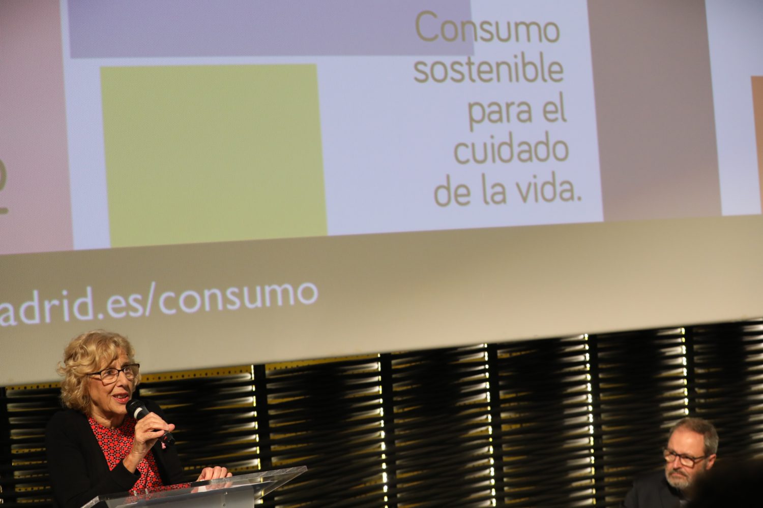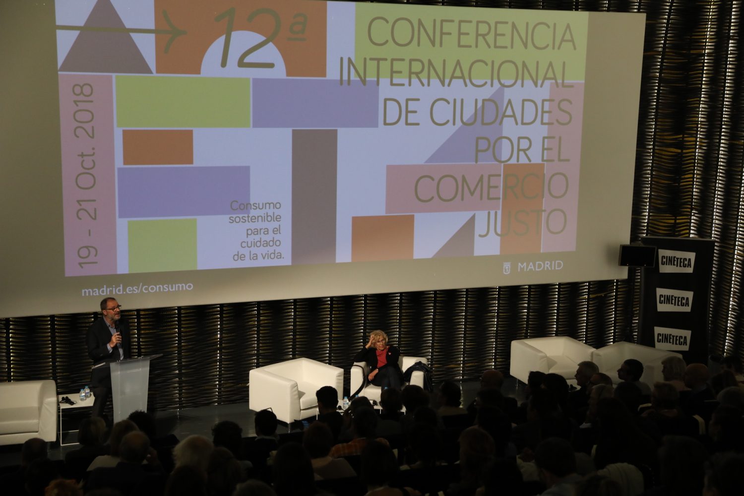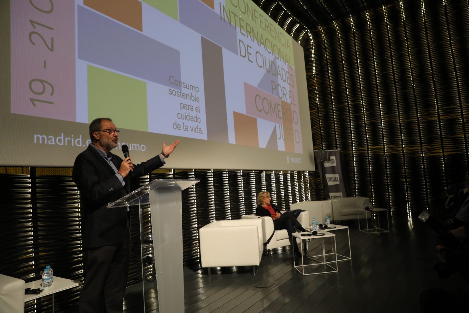 La alcaldesa de Madrid, Manuela Carmena, y el delegado del Área de Salud, Seguridad y Emergencias, Javier Barbero, han asistido esta tarde a la apertura del encuentro, que se desarrollará días 19, 20 y 21 de octubre en la sala Azcona de Cineteca Madrid, en Matadero, bajo el lema “Consumo sostenible para el cuidado de la vida”.