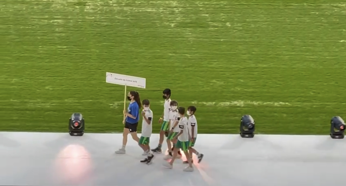 La concejala delegada de Deporte, Sofía Miranda, ha participado en la ceremonia de celebración del torneo MADCUP 2021 que se celebra entre el 26 y el 30 de junio y en la que los equipos participantes han desfilado en el Estadio Wanda Metropolitano en lo que se ha convertido en una gran fiesta del fútbol base.