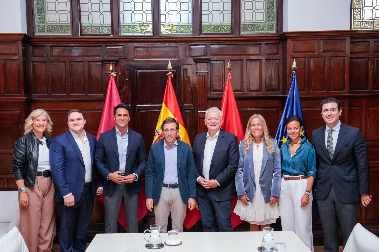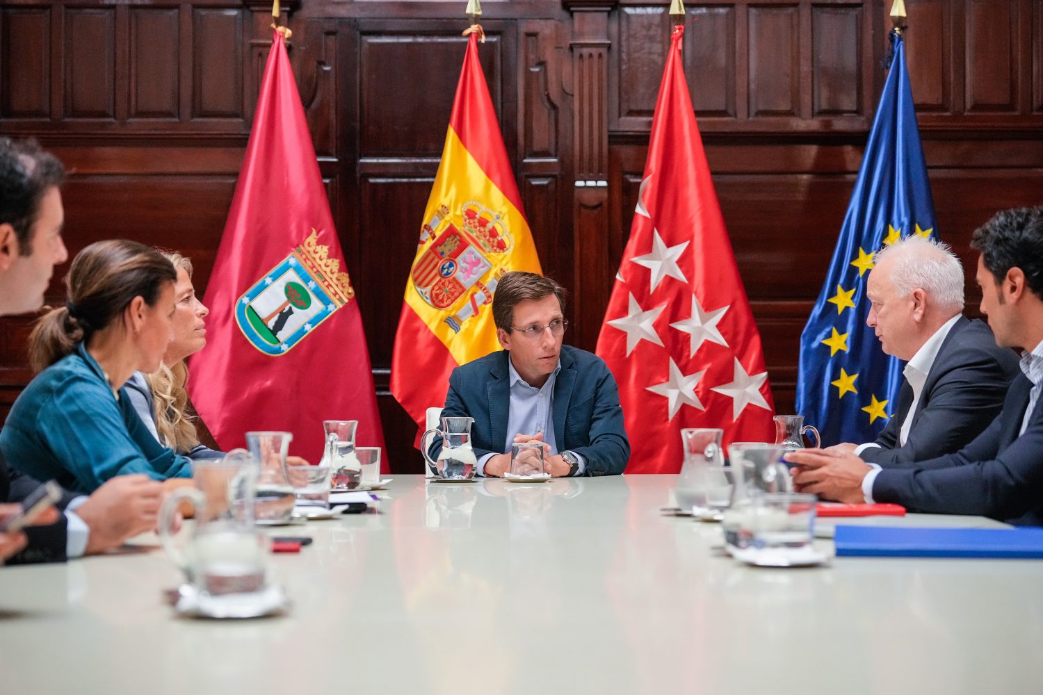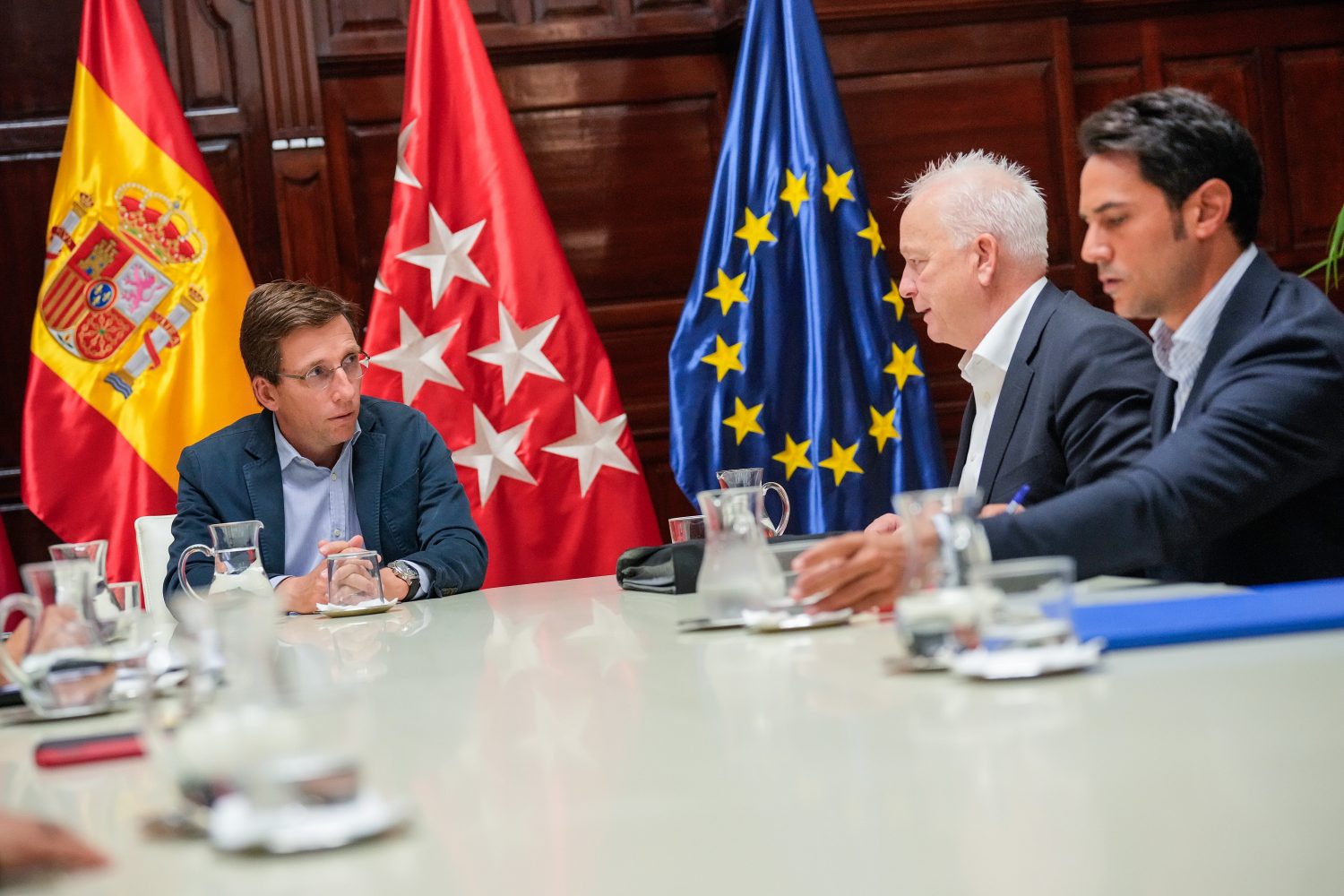 El alcalde de Madrid, José Luis Martínez-Almeida, ha recibido en el Palacio de Cibeles a los responsables de la compañía aérea Ryanair, encabezados por el CEO de su filial Ryanair DAC, Eddie Wilson, quienes han presentado a Almeida, a la concejala delegada de Turismo, Almudena Maíllo, y a la consejera de Economía, Hacienda y Empleo de la Comunidad de Madrid, Rocío Albert, el proyecto de creación de un nuevo centro de formación de última generación para pilotos y tripulantes de cabina que se va a implantar en el distrito de Barajas, donde la compañía ya ha adquirido un terreno. Este centro será el tercero que Ryanair tenga en Europa, ya que cuenta con otros dos en Dublín e Italia.
