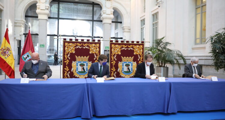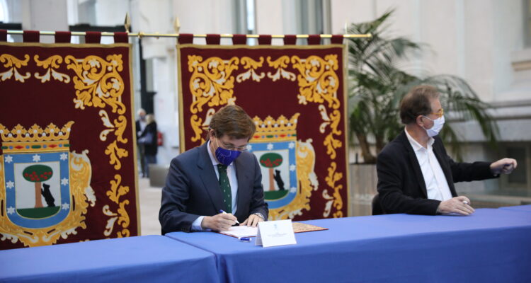 El documento, elaborado por el área que dirige Miguel Ángel Redondo, lo ha firmado el alcalde con los secretarios generales de CCOO Madrid y UGT Madrid, Jaime Cedrún y Luis Miguel López, respectivamente, y el presidente de CEIM, Miguel Garrido, tras la reunión del Consejo Local para el Desarrollo y el Empleo de Madrid. En esa reunión se ha analizado que la reactivación económica viene de la mano de la estimulación interna de sectores estratégicos como son la hostelería, el comercio de proximidad, la potenciación de los espacios culturales y de ocio (Teatro Español y Naves, Matadero, Circo Price, Espacio Abierto Quinta de los Molinos y CentroCentro), así como de los festivales municipales y la recuperación de actividades como el Día del Libro o los tablaos flamencos madrileños.