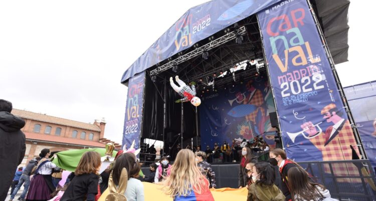 Las fiestas de carnaval 2022 siguen llenando las calles de Madrid de color y alegría. Tras los conciertos de Amatria, Soleá Morente y las sesiones DJ en plaza Matadero, hoy les ha tocado el turno a las actividades más tradicionales.