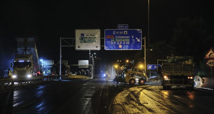 Madrid Calle 30, sociedad dependiente del Área de Obras y Equipamientos, ha finalizado en la primera semana de agosto la campaña de asfaltado 2023 de la vía M-30. Esta intervención, que ha consistido en un proyecto integral de renovación vial sobre una superficie de 100.000 m2 y ha contado con una inversión de tres millones de euros, se ha realizado desde la glorieta de Mariano Salvador Maella hasta la intersección con la A-6, con intervenciones en los sectores de los nudos de la M-607, M-11 y M-23, en sentido de salida de Madrid.
