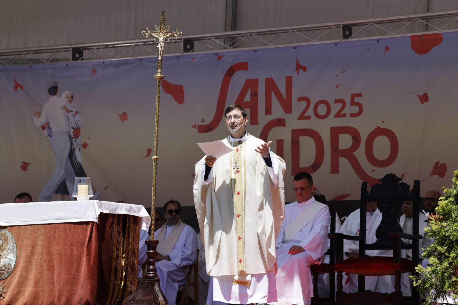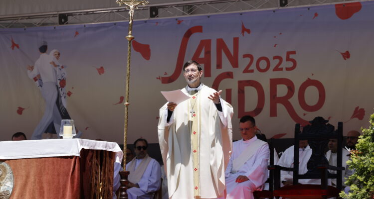 El alcalde de Madrid, José Luis Martínez-Almeida, acompañado por la vicealcaldesa, Inma Sanz, y otros miembros del equipo de Gobierno y de los portavoces de los grupos municipales, ha asistido hoy a la tradicional misa de campaña en honor a San Isidro Labrador, patrón de Madrid, que se ha celebrado en la Pradera de San Isidro. La ceremonia ha estado presidida por el cardenal arzobispo de Madrid, José Cobo Cano, y ha sido organizada por la Pontificia y Real Archicofradía Sacramental de San Pedro, San Andrés y San Isidro, en colaboración con el Ayuntamiento de Madrid.