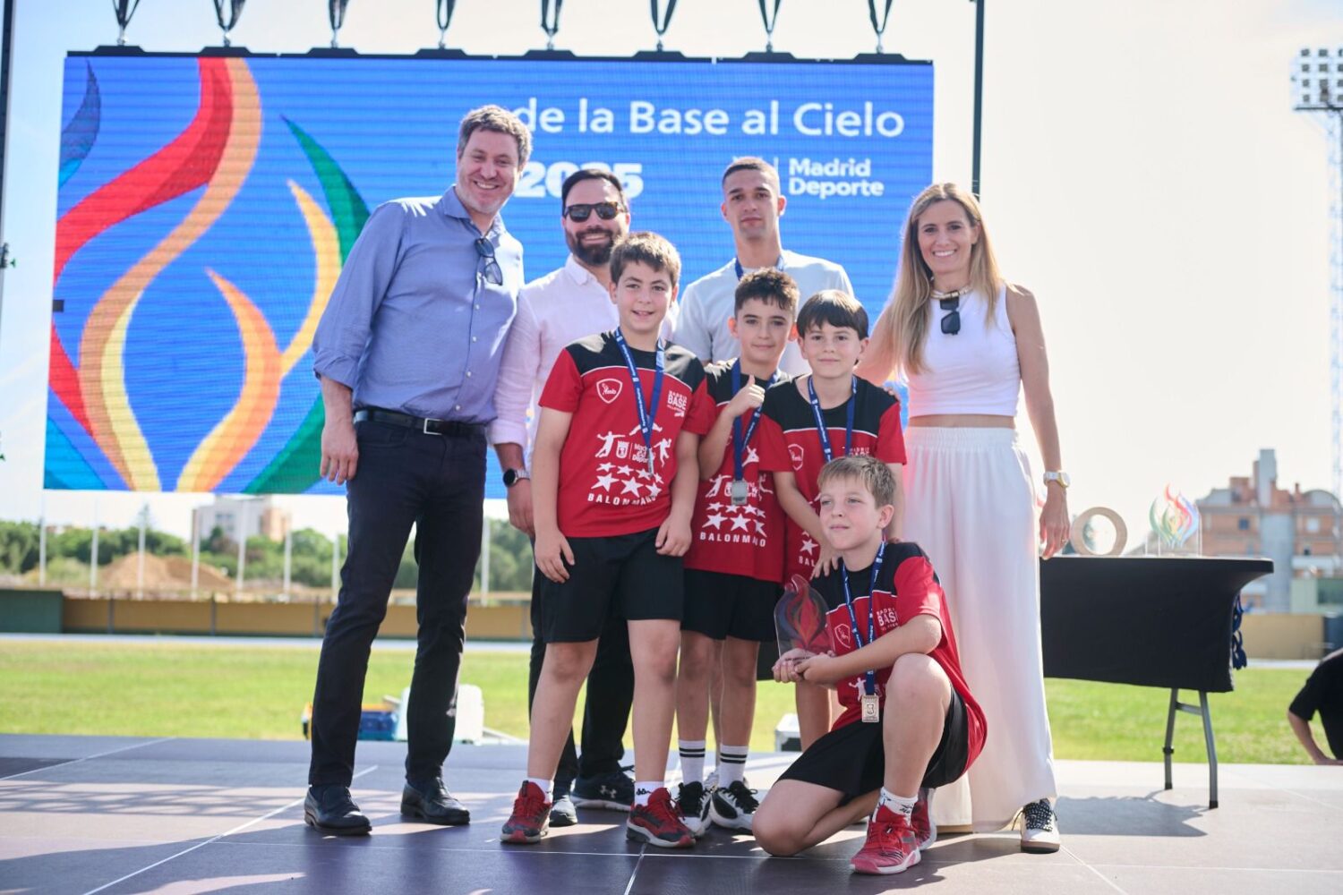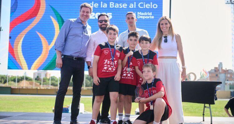 La concejala delegada de Deporte, Sonia Cea, acompañada de los concejales de Latina, Alberto González Díaz, y de Puente de Vallecas, Ángel Niño, ha participado esta mañana en la ceremonia de clausura y entrega de premios de la segunda edición de las Escoladas, que se ha desarrollado en las pistas de atletismo del Centro Deportivo Municipal Aluche.