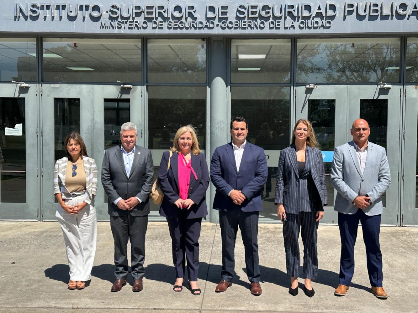 Tras esta visita, Sanz se ha desplazado al Instituto Superior de Seguridad Pública, el centro en el que se forman los agentes de Policía de Buenos Aires (el equivalente al Instituto de Formación Integral en Seguridad y Emergencias –IFISE– de Madrid), que ha recorrido y donde ha mantenido un encuentro con el ministro de Seguridad de la capital bonaerense, Horacio Giménez. /