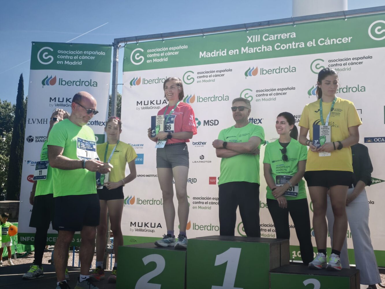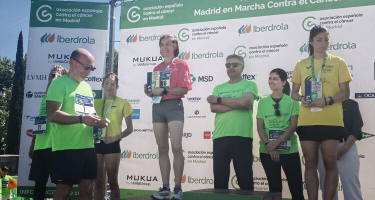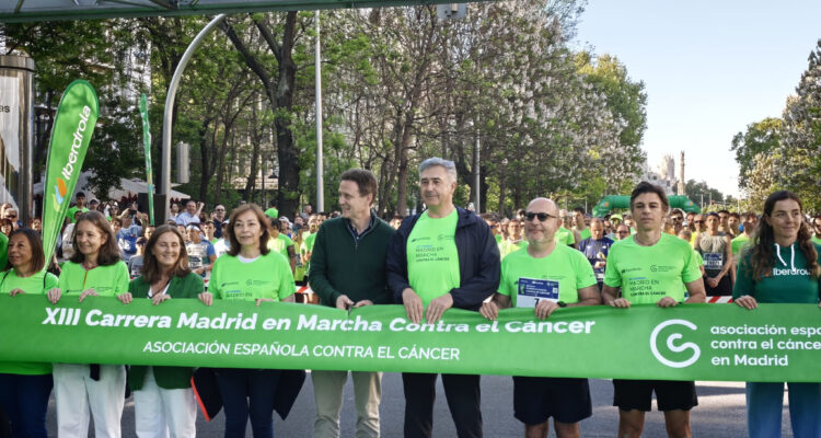 El delegado de Políticas Sociales, Familias e Igualdad, José Fernández, junto a los concejales de Salamanca, Cayetana Hernández de la Riva, y de Chamberí, Jaime González Taboada, ha dado hoy la salida y entregado los trofeos de la XIII Carrera Madrid en Marcha Contra el Cáncer que ha congregado a cerca de 35.000 corredores esta mañana en el paseo de la Castellana.