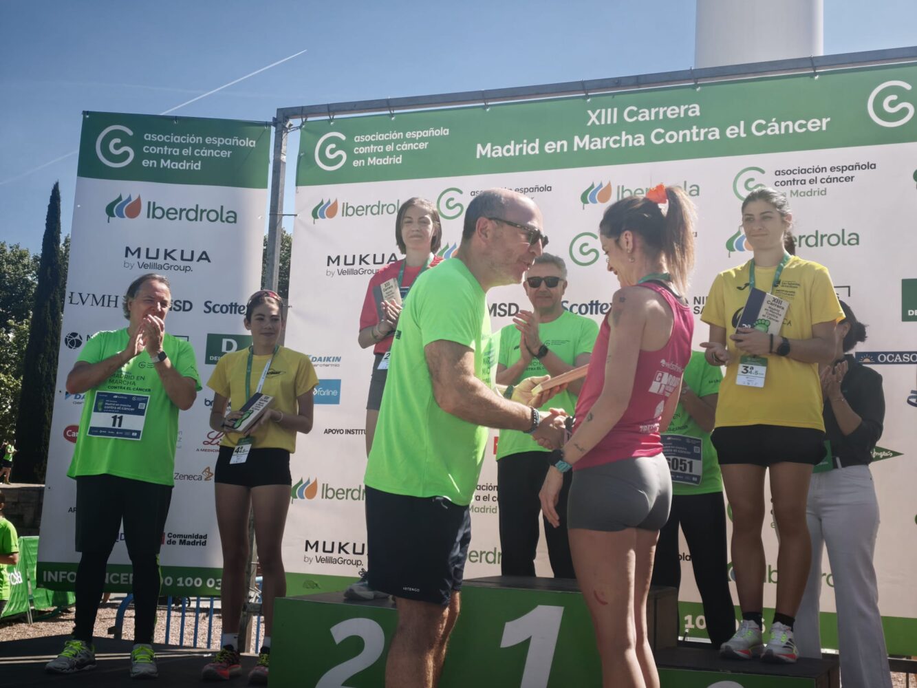 Fernández, con Hernández de la Riva y González Taboada, en la línea de salida de la carrera y en la entrega de trofeos