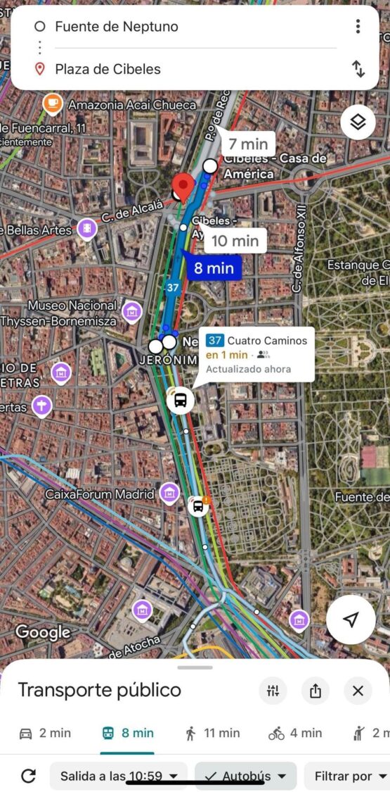 Con este avance, EMT Madrid da un paso más en la colaboración que inició con Google en 2009 y se adelanta a las exigencias normativas europeas de datos abiertos, convirtiéndose en el primer transporte público de Madrid con información integrada en Google Maps en tiempo real. /