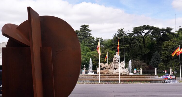 La colocación de Hermes en la plaza de Cibeles pone el broche de oro a la exposición Rafael Canogar [I]Realidades [Obras 1949-2024], que se puede ver en CentroCentro hasta el 18 de mayo. Una muestra comisariada por Alfonso de la Torre, que ha recibido más de 38.000 visitantes desde finales de enero y que recorre más de siete décadas de trayectoria del creador, desde 1949 hasta algunas de sus obras más recientes.