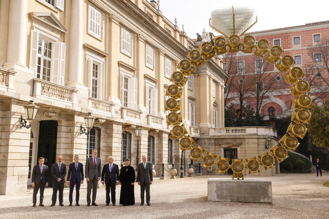 El alcalde de Madrid, José Luis Martínez-Almeida, ha acompañado hoy al rey Felipe VI en la inauguración de la exposición Flamboyant. Joana Vasconcelos, muestra organizada por la Fundación Casa de Alba y la artista portuguesa con la colaboración del Ayuntamiento de Madrid, que se podrá visitar en el Palacio de Liria a partir de mañana, 14 de febrero, y hasta el 31 de julio.