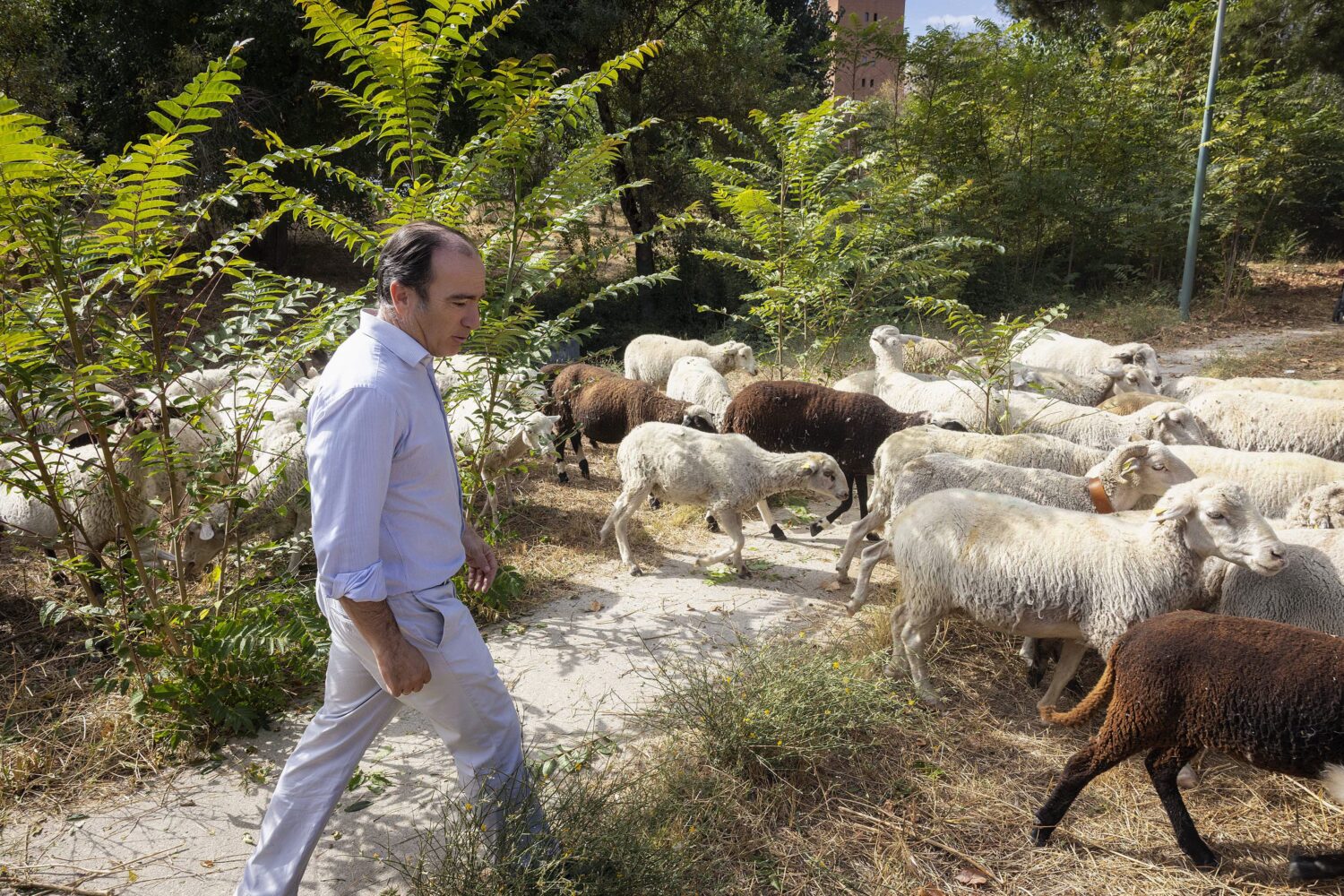El delegado de Urbanismo, Medio Ambiente y Movilidad, Borja Carabante, acompañado por el concejal de Limpieza y Zonas Verdes, José Antonio Martínez Páramo, ha dado la bienvenida este viernes a las 1.140 ovejas y cabras guisandesas provenientes de la Sierra de Gredos y Ávila, que el próximo domingo protagonizarán la Fiesta de la Trashumancia 2025 recorriendo las calles de la capital. Ha sido en Casa de Campo, junto a las Rejas del arroyo Meaques, donde los responsables municipales han saludado a Manuel Bahíllo Martín, secretario de la Fundación Trashumancia y Naturaleza. Asimismo, mañana se sumarán al rebaño llegado hoy otras 120 cabras de la zona de Guadarrama.