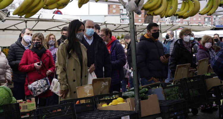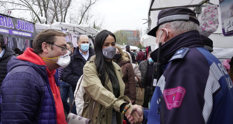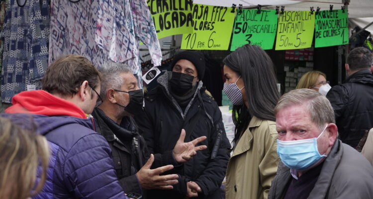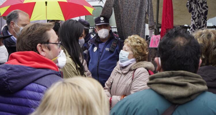 Villacís ha realizado este anuncio durante su visita al mercadillo municipal de Aluche donde, junto al concejal de Latina, Alberto Serrano ha comprobado las intervenciones realizadas por el Consistorio para ayudar al comercio ambulante, uno de los sectores más perjudicados por la pandemia y que resulta “fundamental para el abastecimiento de los barrios”. /