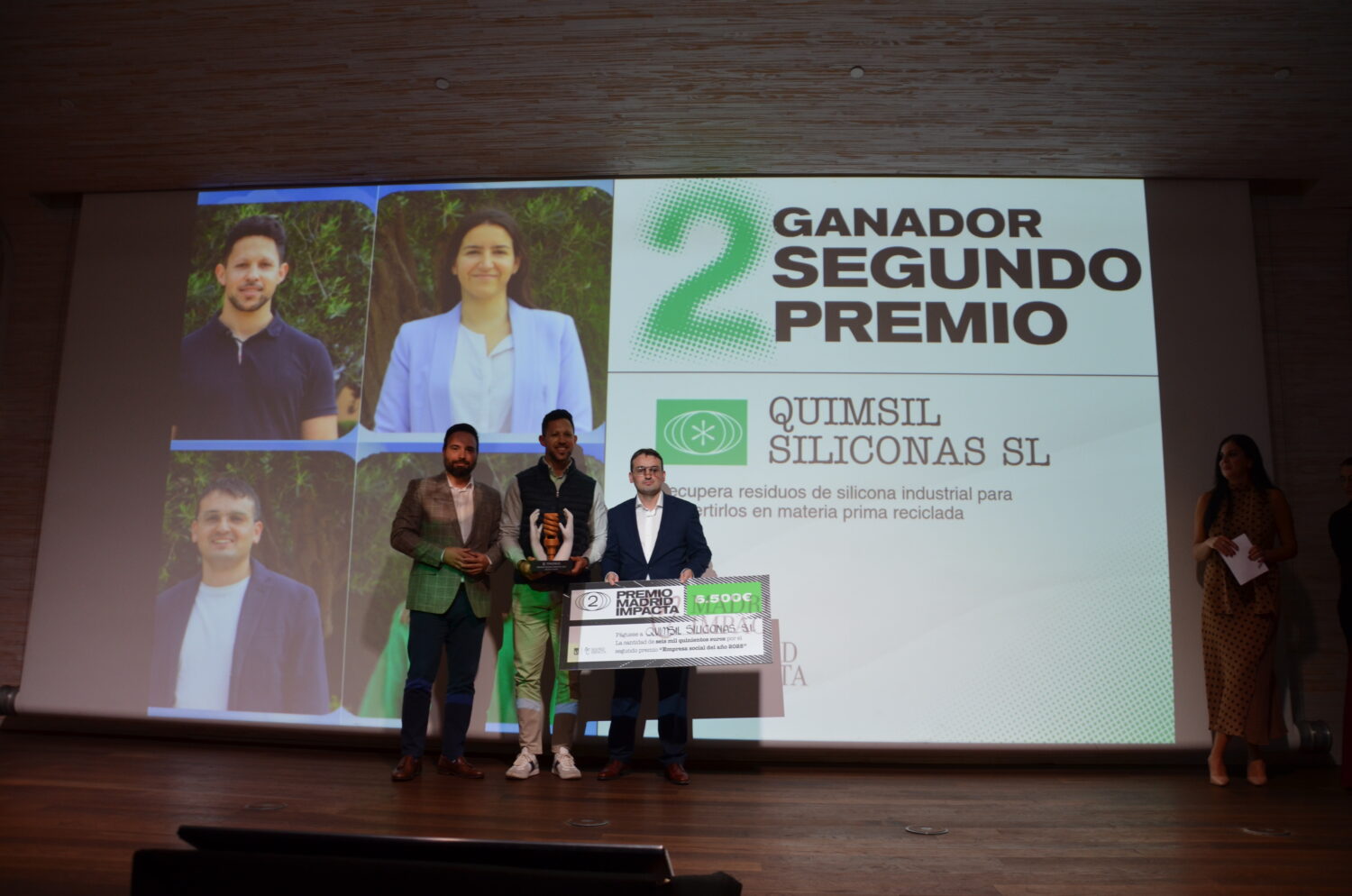 El segundo premio, con una dotación de 6.500 euros, ha sido para Quimsil Siloconas, una empresa que ha desarrollado un procedimiento patentado para el reciclaje químico de residuos de silicona industrial. Mediante despolimerización controlada, transforma estos residuos en materia prima reutilizable. El producto reciclado conserva propiedades equivalentes a la silicona virgen y se comercializa nuevamente a las empresas generadoras, cerrando así el ciclo económico.