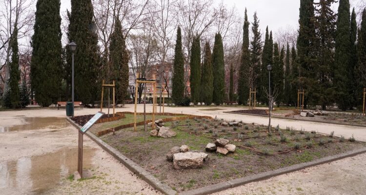 En el parque de la Almudena, se ha llevado a cabo la plantación de Tamarix africana, una especie adecuada para la regeneración ecológica. Además, se han construido muros de biodiversidad para albergar fauna urbana, se han instalado refugios para insectos y aves y se han reconvertido parterres en praderas biodiversas, mejorando la calidad del suelo y favoreciendo la polinización.