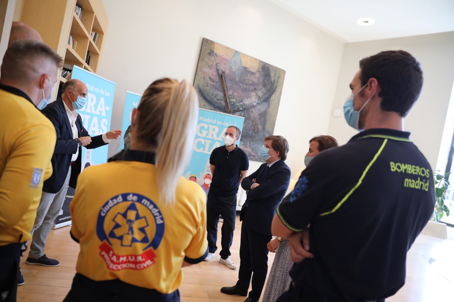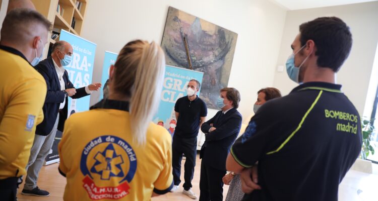 El Ayuntamiento de Madrid, a través del Área Delegada de Turismo y en colaboración con la Asociación Empresarial Hotelera de Madrid (AEHM), ha puesto en marcha la campaña ‘Madrid os da las gracias’ para reconocer el gran esfuerzo de los profesionales que han estado trabajando en primera línea durante la crisis sanitaria provocada por la pandemia de COVID-19. El alcalde de Madrid, José Luis Martínez-Almeida, junto a la concejala delegada de Turismo, Almudena Maíllo, ha recibido esta tarde a representantes de los colectivos de sanitarios y cuerpos y fuerzas de seguridad, a los que les ha hecho entrega de forma simbólica de la tarjeta nominativa de esta iniciativa, dirigida especialmente al personal sanitario, de seguridad y emergencias que durante su próxima visita a la capital podrá disfrutar aún más de la oferta turística y cultural madrileña gracias a una serie de ventajas y promociones.