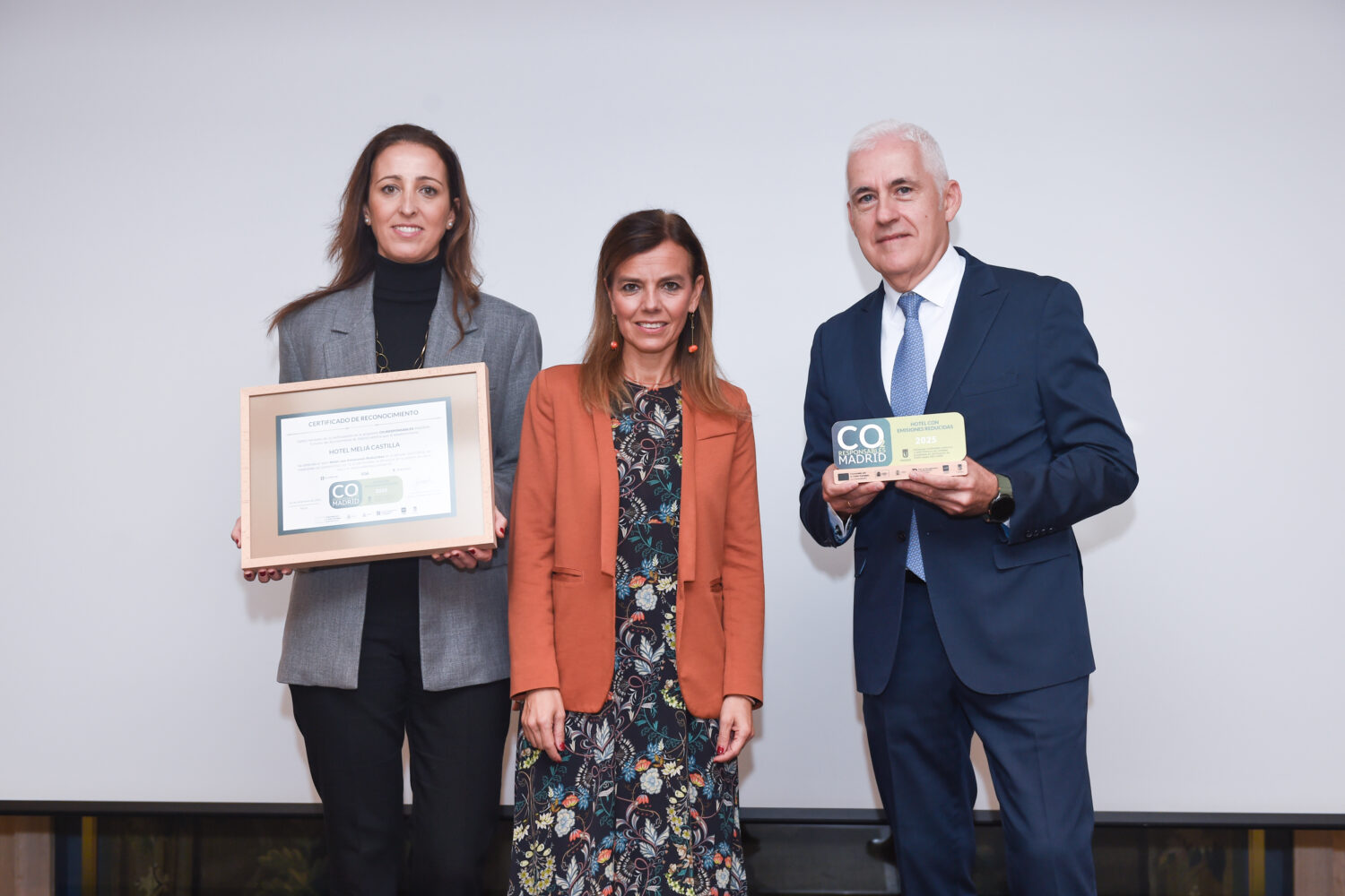 Aquellos que se encuentren en una fase inicial de reducción lograrán el sello Establecimiento comprometido. Quienes demuestren una reducción mínima del 10 % frente a aquellos que no hayan tomado ninguna medida o usen un 100 % de energía renovable, obtendrán el sello Establecimiento con emisiones reducidas. En este caso, además, tendrán la opción de compensarlas. El hotel Meliá Castilla ha sido el primero en sumarse al programa y conseguir el distintivo de Establecimiento con emisiones reducidas, que le ha sido entregado hoy durante la presentación.