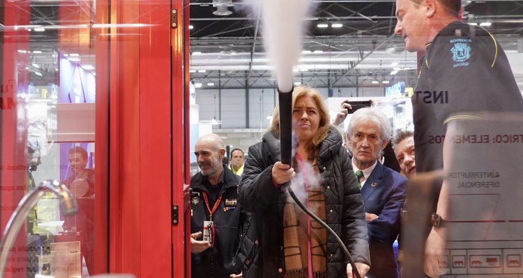 Bomberos de Madrid, por último, muestra un vehículo auto escala y su aula experimental donde imparten formación en prevención para actuar ante incendios y prevenir sus riesgos (con una zona expresamente para los derivados de la electricidad, los productos de limpieza, etc., y otra para actuar ante los riesgos de las cocinas). /