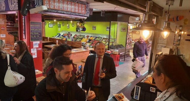 El delegado de Economía, Innovación y Empleo, Miguel Ángel Redondo, ha visitado hoy el Mercado de San Antón, uno de los lugares que acoge esta ruta gastronómica para despedir el carnaval. En palabras del delegado, “¡Nos vamos de sardinas! es una original iniciativa que nos permite acercarnos a la hostelería y al comercio de Madrid”. Redondo ha valorado “el gran esfuerzo que han hecho los mercados municipales implicados en esta particular ruta para ofrecer tapas de sardinas dulces y saladas”.