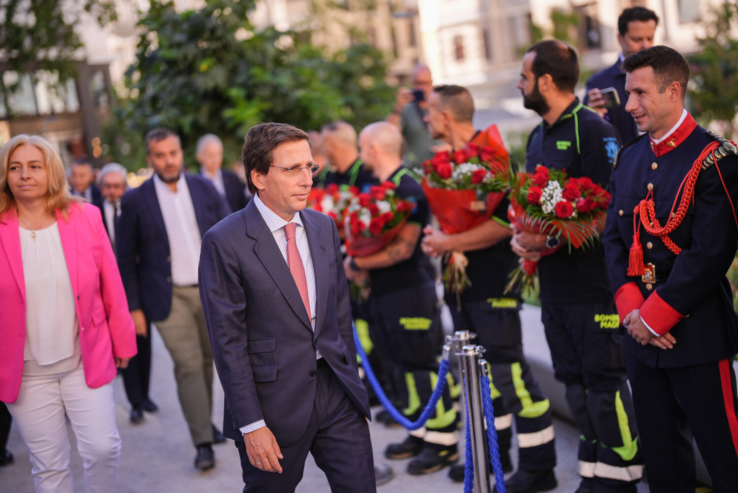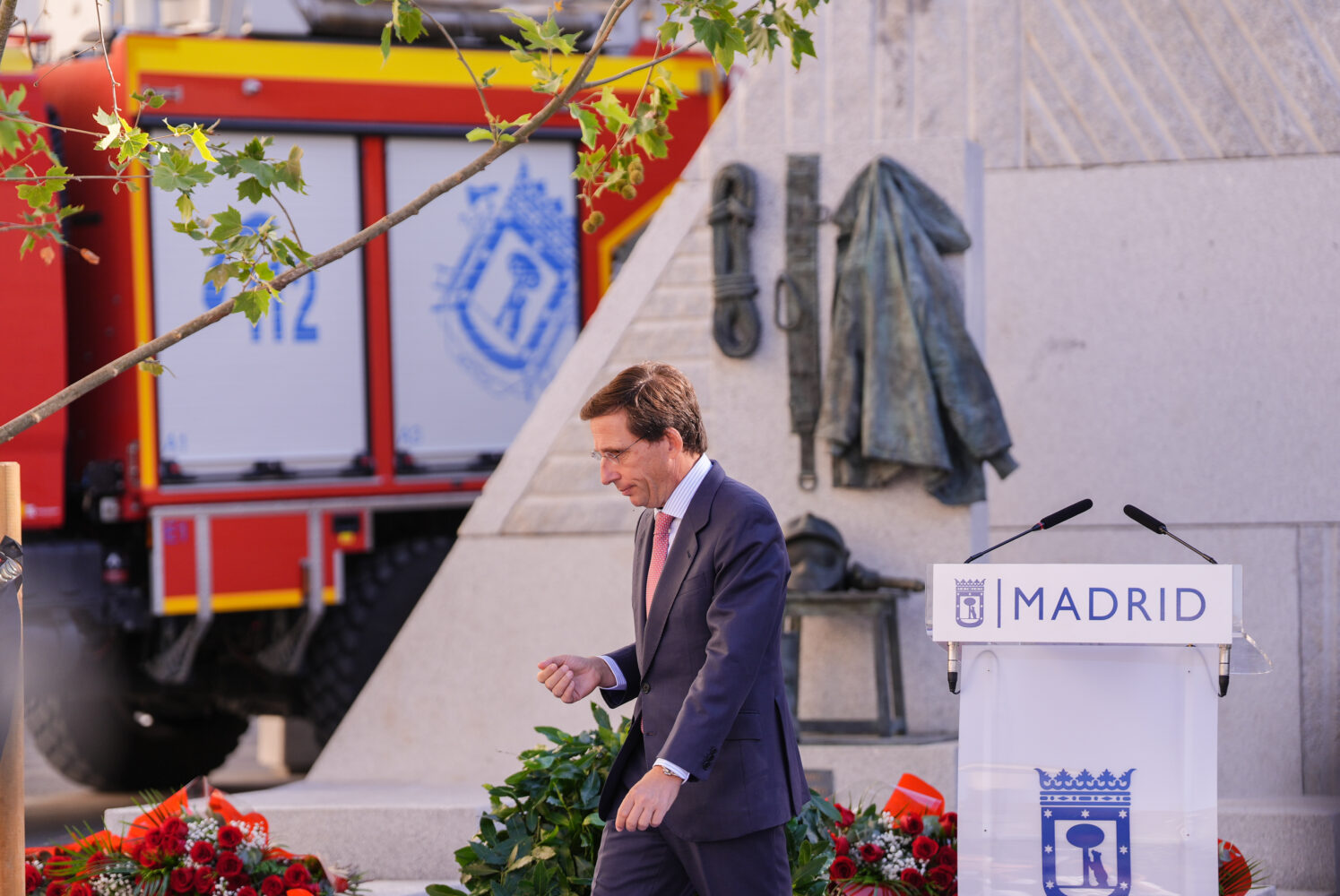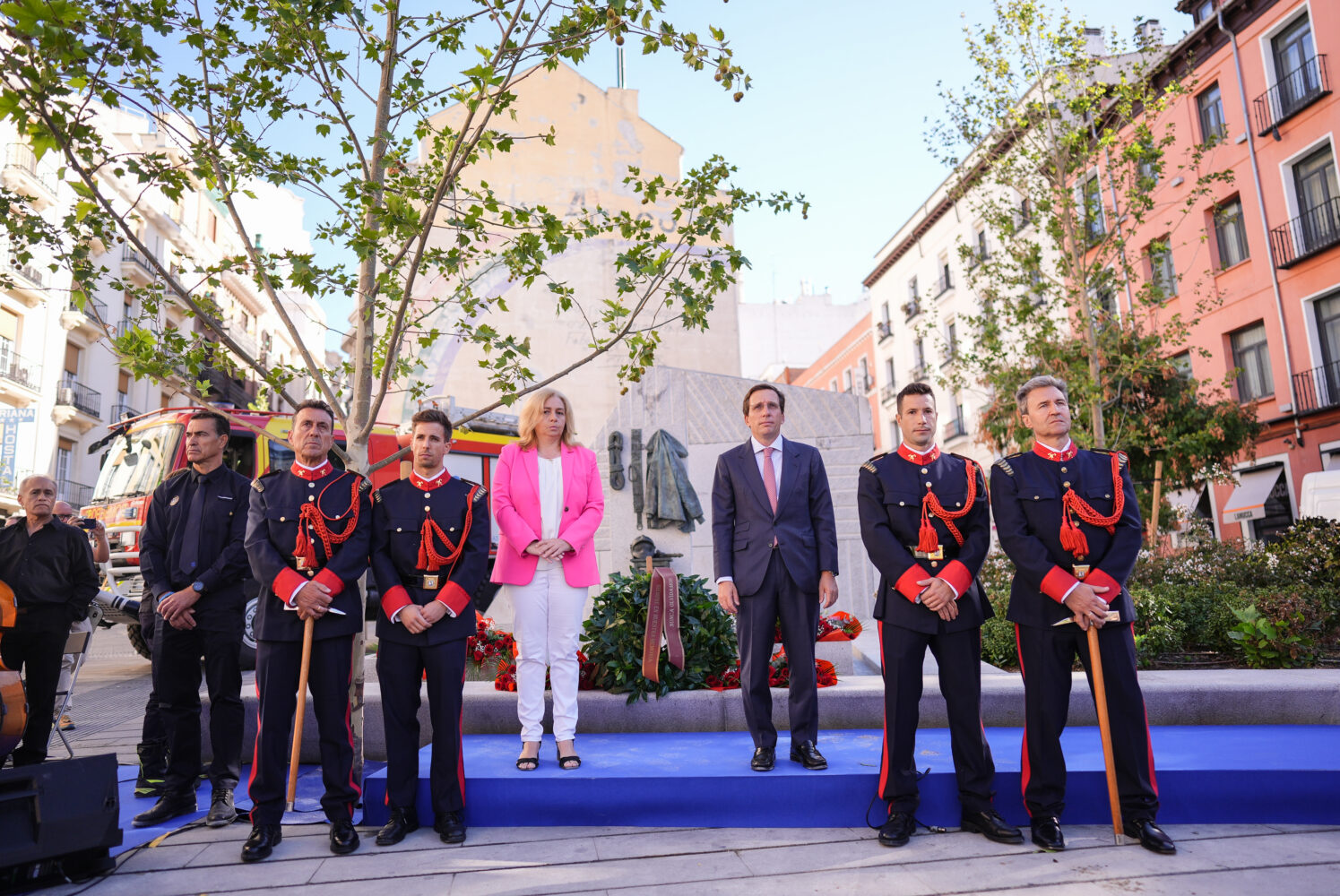 Representantes de cada parque de bomberos han entregado una ofrenda floral en memoria de cada uno de sus compañeros fallecidos y el alcalde y la vicealcaldesa han depositado una corona de laurel en el Monumento al Bombero, el conjunto escultórico en honor al Cuerpo instalado a pocos metros del lugar donde se ubicaban los Almacenes Arias. “Este lugar tan central de la ciudad de Madrid nos recuerda que los bomberos son un elemento central de la vida de los madrileños, que nos dan luz donde no la hay, que están donde nadie quiere estar y ponen en riesgo su vida”, ha comentado el alcalde, que también ha aprovechado para hacer un tributo a todos los que han trabajado “en los incendios voraces que hemos tenido en diferentes zonas de España este verano”.