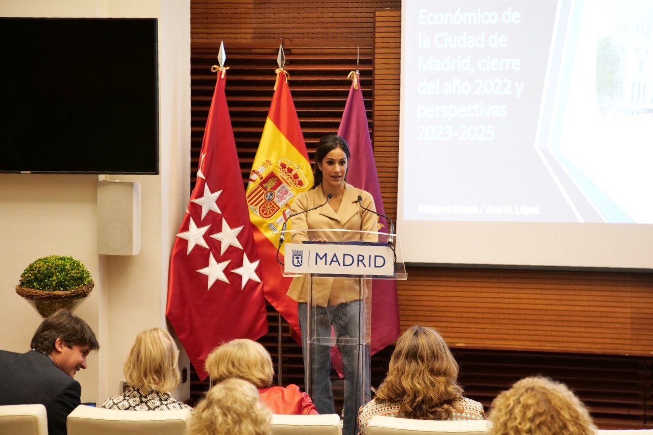 La vicealcaldesa de Madrid, Begoña Villacís, y el delegado de Economía, Innovación y Empleo, Miguel Ángel Redondo, han presentado hoy el informe Situación y Perspectivas de la Economía de la Ciudad de Madrid, que contempla datos del año 2022 y adelanta previsiones para el periodo 2023-2025. El informe, encargado y patrocinado por el Ayuntamiento de Madrid, ha sido elaborado por el Centro de Predicción Económica CEPREDE, en colaboración con el Instituto Universitario L.R.Klein-UAM y la red HISPALINK.