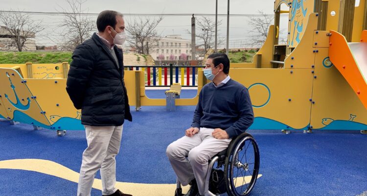 El juego para los más pequeños no entiende de barreras. Mejorar la accesibilidad en el mobiliario urbano y también en las zonas de juegos es uno de los objetivos del Área de Medio Ambiente y Movilidad. Hoy, el delegado Borja Carabante ha supervisado los trabajos en una de las cuatro áreas recientemente renovadas, El Yesero, en Puente de Vallecas, acompañado por el concejal del distrito, Borja Fanjul. Real de Arganda (Villa de Vallecas), Juan Carlos Onetti (Vicálvaro) y Juan Benet (Vicálvaro) son otras de las instalaciones mejoradas.