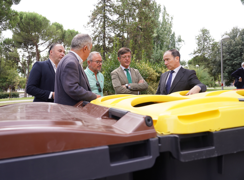 El delegado de Urbanismo, Medio Ambiente y Movilidad, Borja Carabante, acompañado por el concejal delegado de Limpieza y Zonas Verdes, José Antonio Martínez Páramo, y el concejal presidente del Moratalaz, Nacho Pezuela, han visitado esta mañana el barrio de Fontarrón para comprobar el proceso de renovación que se está llevando a cabo de los 15.000 contenedores de 800 litros para las fracciones orgánica (contenedor marrón), resto (naranja) y envases (amarillo), que hay repartidos por 17 distritos de la ciudad.