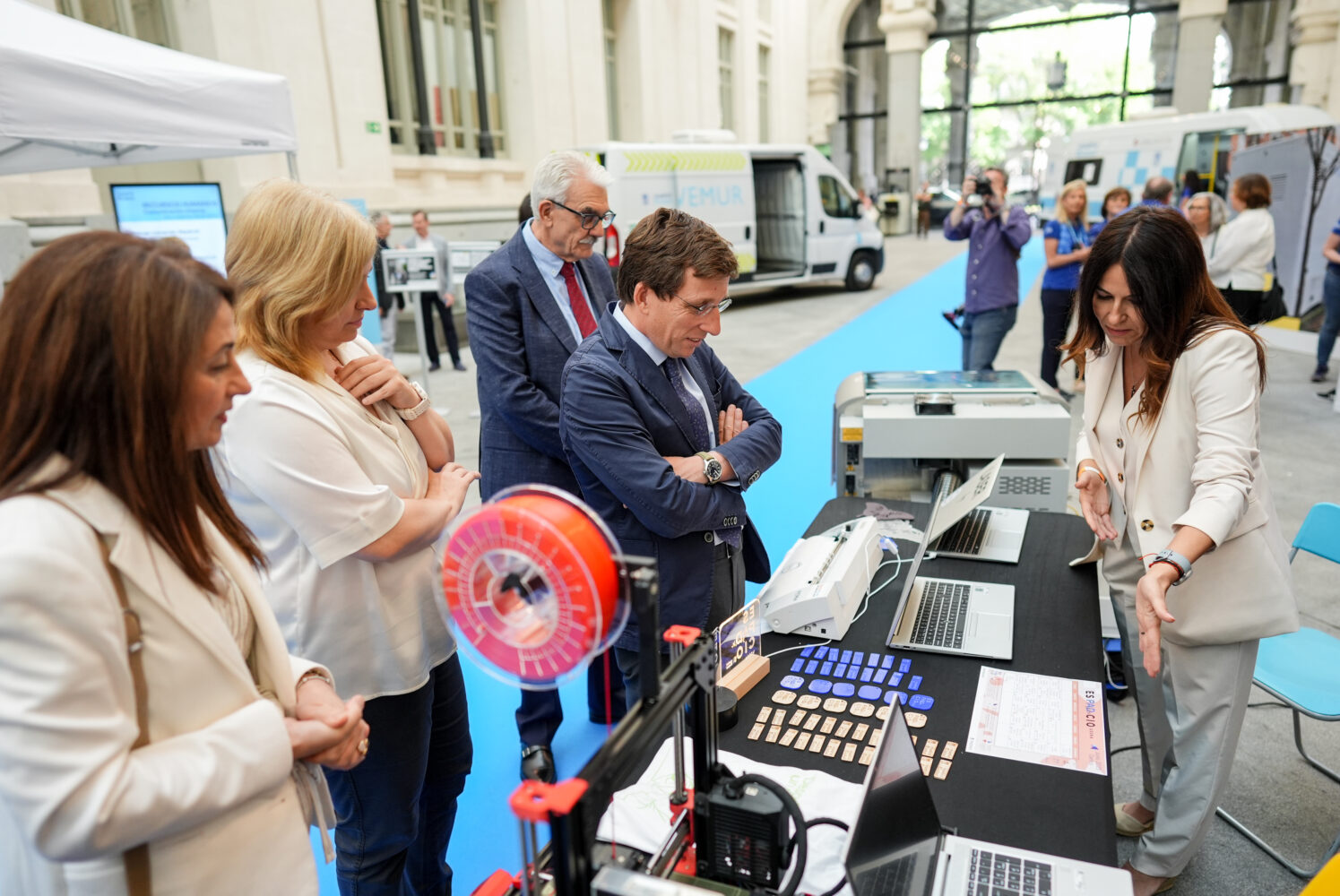 El acto ha incluido un recorrido por la exposición conmemorativa situada en la Galería de Cristal del Palacio de Cibeles, que muestra materiales impresos y expositores digitales de la actividad de Madrid Salud, así como algunos de los vehículos singulares con los que presta su labor diaria.