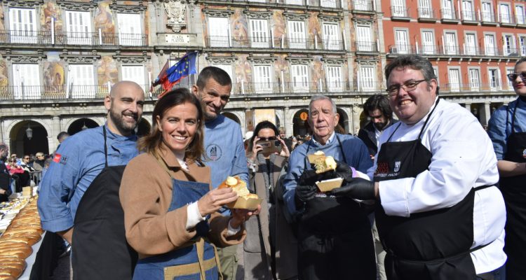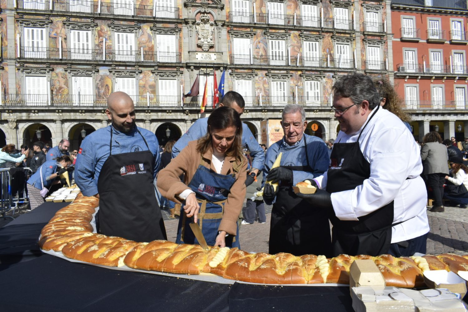La concejala de Turismo, Almudena Maíllo, ha acompañado hoy a los cientos de madrileños que han participado en las actividades organizadas por el Consistorio para celebrar la jornada festiva en honor a la patrona de Madrid. La plaza Mayor ha servido de escenario a la Asociación de Cocineros y Reposteros de Madrid (ACYRE Madrid) para la elaboración de la Corona de La Almudena, el dulce tradicional del que se han ofrecido miles de raciones entre los asistentes.