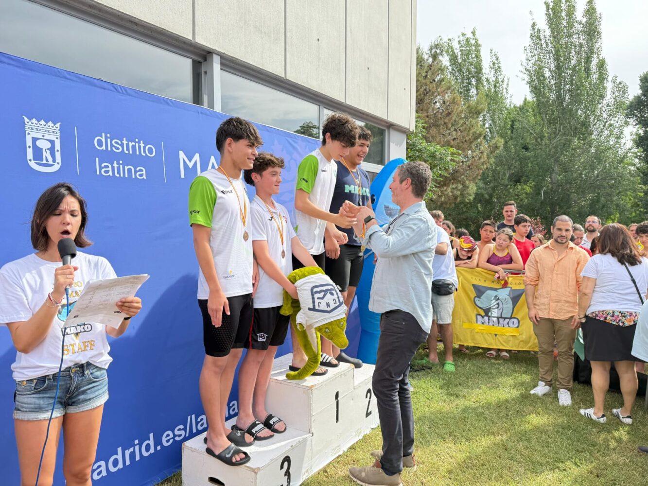 El concejal de Latina, Alberto González Díaz, ha asistido esta mañana a las pruebas del I Trofeo Mako-Latina de natación, organizado por el club de natación Mako con la colaboración de la junta municipal, en el que se han dado cita más de 400 nadadores en el Centro Deportivo Municipal Las Cruces y ha entregado las medallas de esta competición puntuable en el calendario de la Federación Madrileña de Natación.