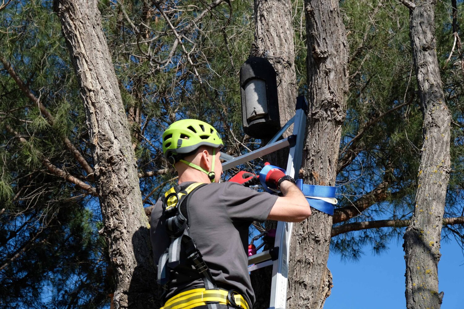 La colocación de las cajas nido para aves se realiza a una altura de entre tres y cinco metros, dependiendo del espacio urbano. Únicamente personal cualificado y certificado por la Comunidad de Madrid puede realizar la instalación, unos trabajos que se realizan entre julio y febrero, con una antelación suficiente a la llegada de la primavera, la época de cría.
