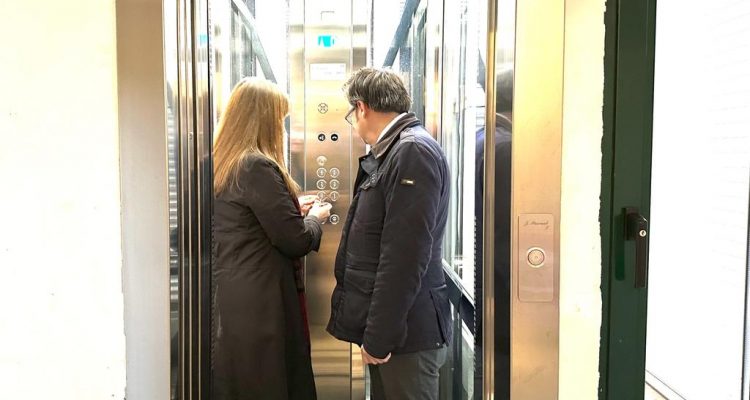 El delegado de Políticas de Vivienda y presidente de la Empresa Municipal de Vivienda y Suelo de Madrid (EMVS Madrid), Álvaro González, ha visitado este sábado un edificio que gracias a las ayudas del Plan Rehabilita 2022 ha mejorado su accesibilidad con la instalación de un ascensor solicitado por la comunidad de vecinos.