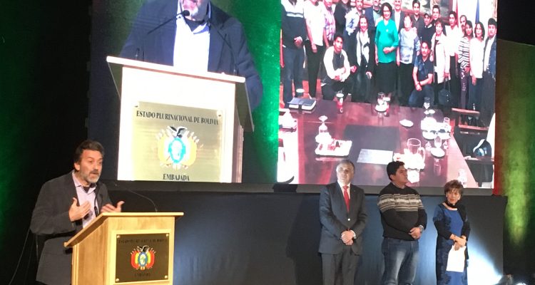 Este sábado se festejó en el espacio cultural La Nave, en un acto de reconocimiento a los participantes de la Entrada Cultural y Artística Virgen de la Urkupiña, que tuvo lugar el pasado mes de agosto, organizado por la embajada de Bolivia en España. El tercer teniente de alcalde y concejal-presidente del distrito de Chamartín, Mauricio Valiente, estuvo presente acompañando este acto de tributo tan significativo para los bolivianos residentes en España, que supone un espacio de integración con el pueblo español y que se viene celebrando en diferentes ciudades desde hace más de una década, y dónde también acudieron el embajador de Bolivia en España, Jorge Ramiro Tapia, el cónsul general en Madrid, Félix González Bernal y distintos representantes de la colectividad boliviana en diferentes lugares de España.