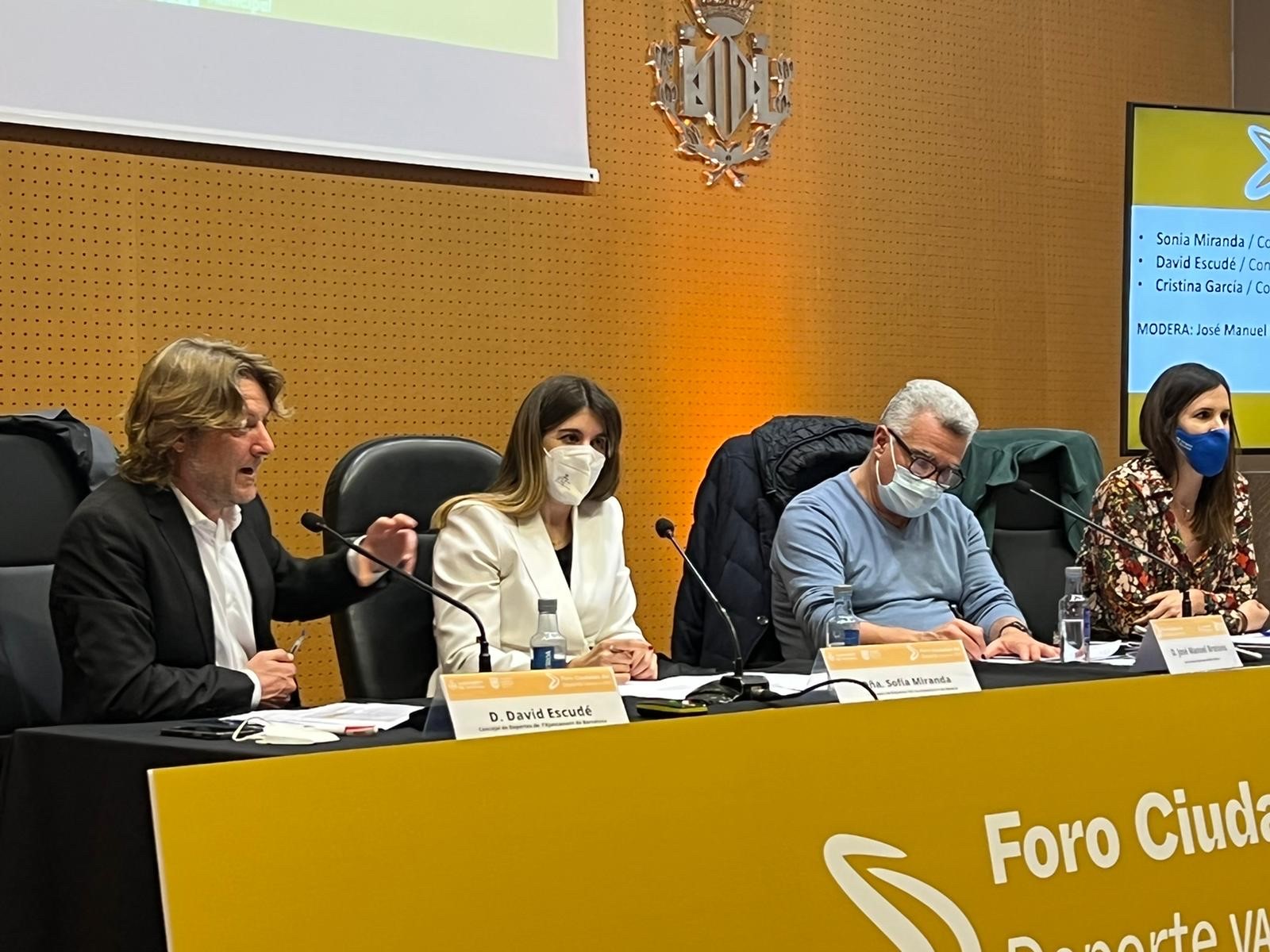 La concejala delegada de Deporte, Sofía Miranda, ha participado esta tarde en el ‘Foro Ciudades del Deporte Valencia 2022’, organizado por la Fundación Deportiva Municipal del Ayuntamiento de Valencia, que este año celebra su segunda edición con dos jornadas en las que destacados profesionales de diversos ámbitos del deporte debaten y reflexionan sobre la práctica deportiva en las ciudades desde diferentes perspectivas.