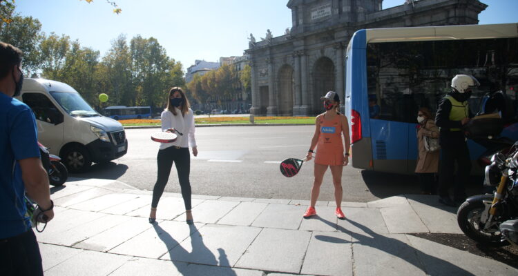 La concejala delegada de Deporte, Sofía Miranda, ha asistido a la presentación del evento Padel Trotters que ha tenido lugar en la Puerta de Alcalá y en la que han participado Juan Martín, considerado el mejor jugador de la historia de este deporte, y los números dos del mundo, Paquito Navarro y Alejandra Salazar.