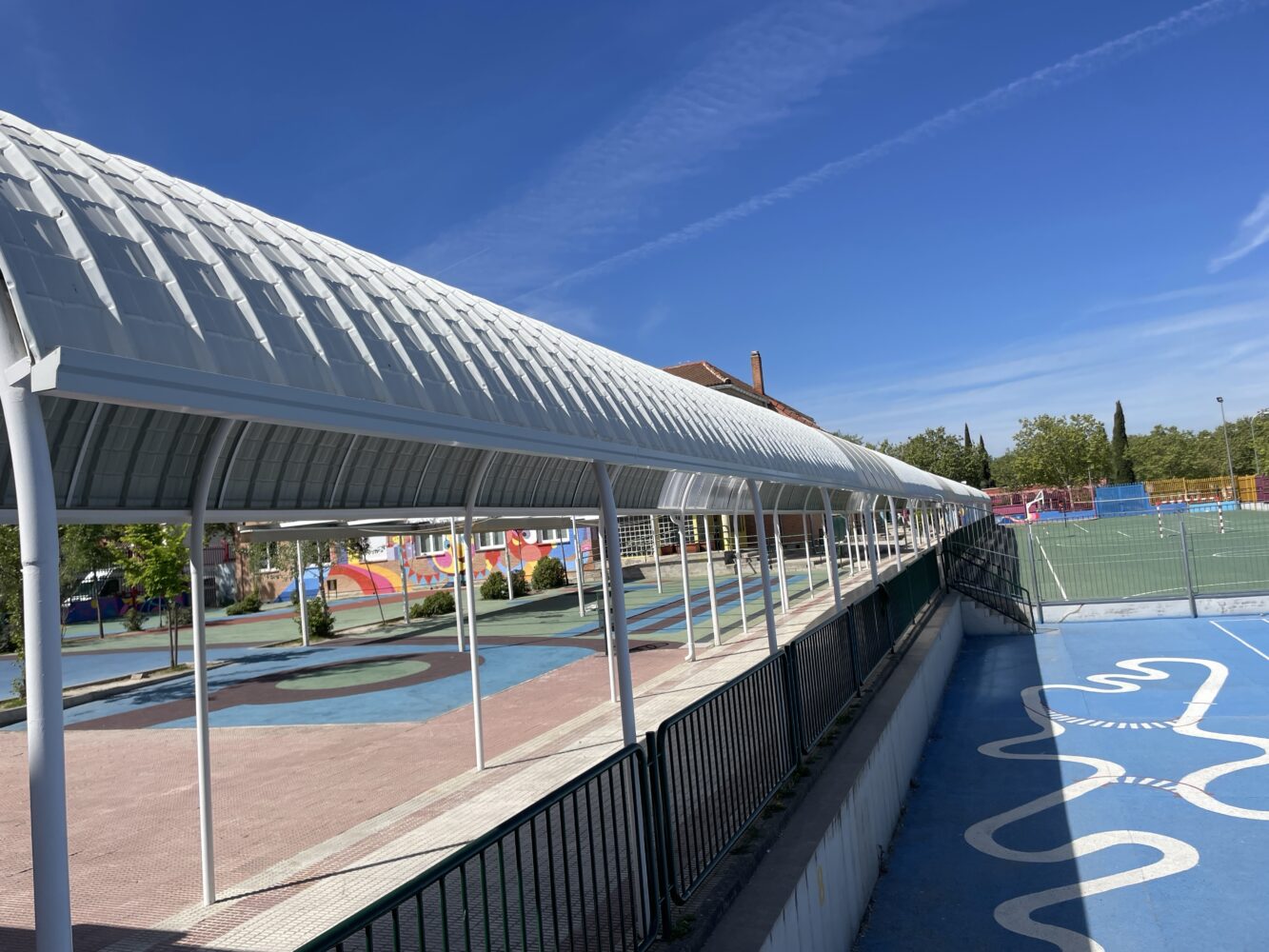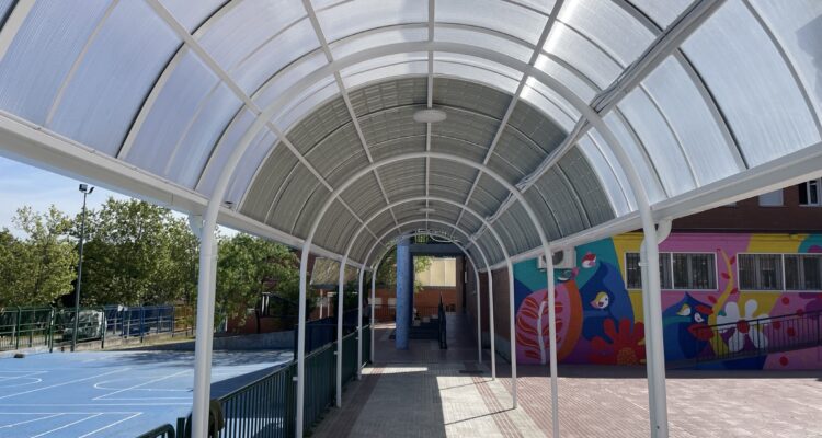 Con un plazo de ejecución de tres meses, los trabajos han incluido la sustitución de la cubierta de una pérgola que conecta los diferentes pabellones del centro y el reemplazo de las luminarias por apliques más eficientes. En los pabellones, se ha renovado la carpintería de las ventanas para mejorar el aislamiento y la eficiencia térmica en su interior.