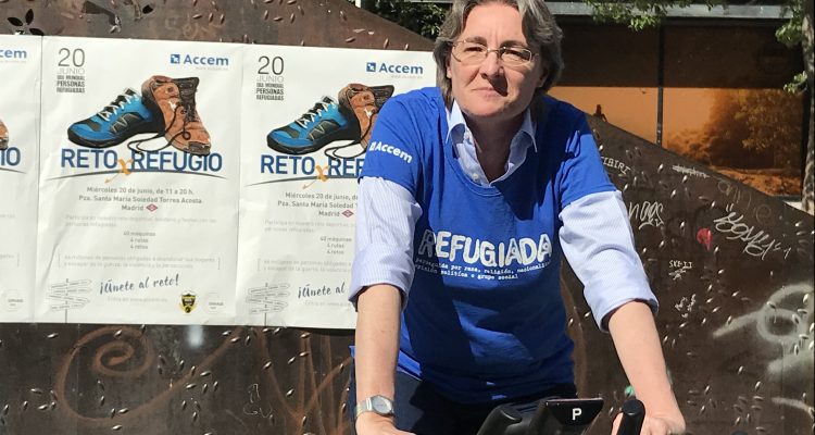 La delegada del área de Equidad, Derechos Sociales y Empleo, Marta Higueras, ha recorrido esta tarde un kilómetro en bicicleta para sumarse al reto deportivo, solidario y festivo que ha organizado la ONG Accem, con motivo del Día Mundial de las Personas Refugiadas.