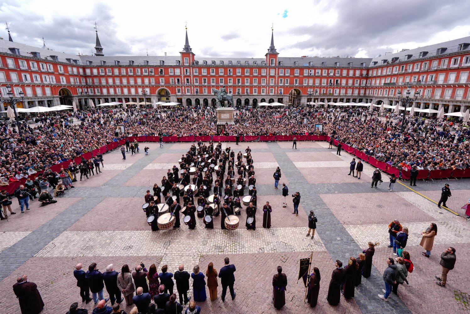 Otro de los momentos más esperados se producirá el domingo, 5 de abril, con la tamborrada de la plaza Mayor (13:00 h), que pondrá fin a la Semana Santa 2026 en Madrid. /