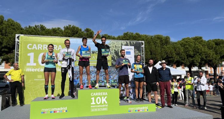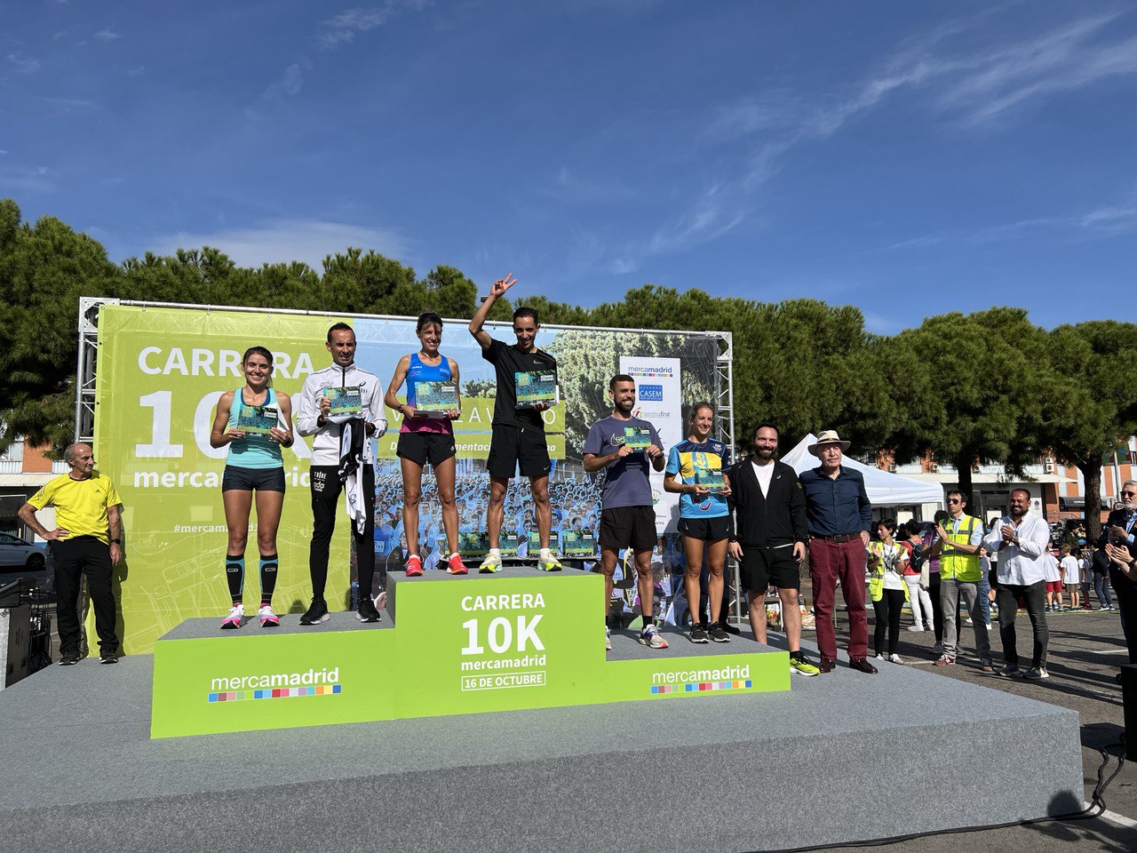 Ángel Niño, presidente de Mercamadrid y delegado del Área de Innovación y Emprendimiento del Ayuntamiento de Madrid; David Chica, director general de Mercamadrid; Andrés Suárez; Manuel López; José Redruejo y Noelia Álvarez, representantes de las Asociaciones empresariales de Mercamadrid han hecho entrega de los premios junto al organizador deportivo de esta carrera, Juan Manuel Gutiérrez, de Marathinez Tours Deportes.