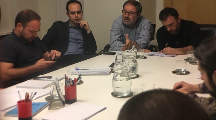 En la mañana de hoy jueves, Nacho Murgui, concejal del área de Coordinación Territorial y Cooperación Público-Social y segundo teniente de Alcaldía, Javier Barbero, concejal del área de Salud, Seguridad y Emergencias, Inés Sabanés, concejala del área de Medio Ambiente y Movilidad, José Manuel Calvo, concejal del área de Desarrollo Urbano Sostenible, Paco Pérez, concejal presidente de la Junta Municipal de Vallecas y representantes del área de Equidad, Derechos Sociales y Empleo y de la Junta Municipal de Vicálvaro, se han reunido en el consistorio de Madrid para iniciar las conversaciones sobre el futuro desarrollo urbanístico, de la Cañada Real Galiana.