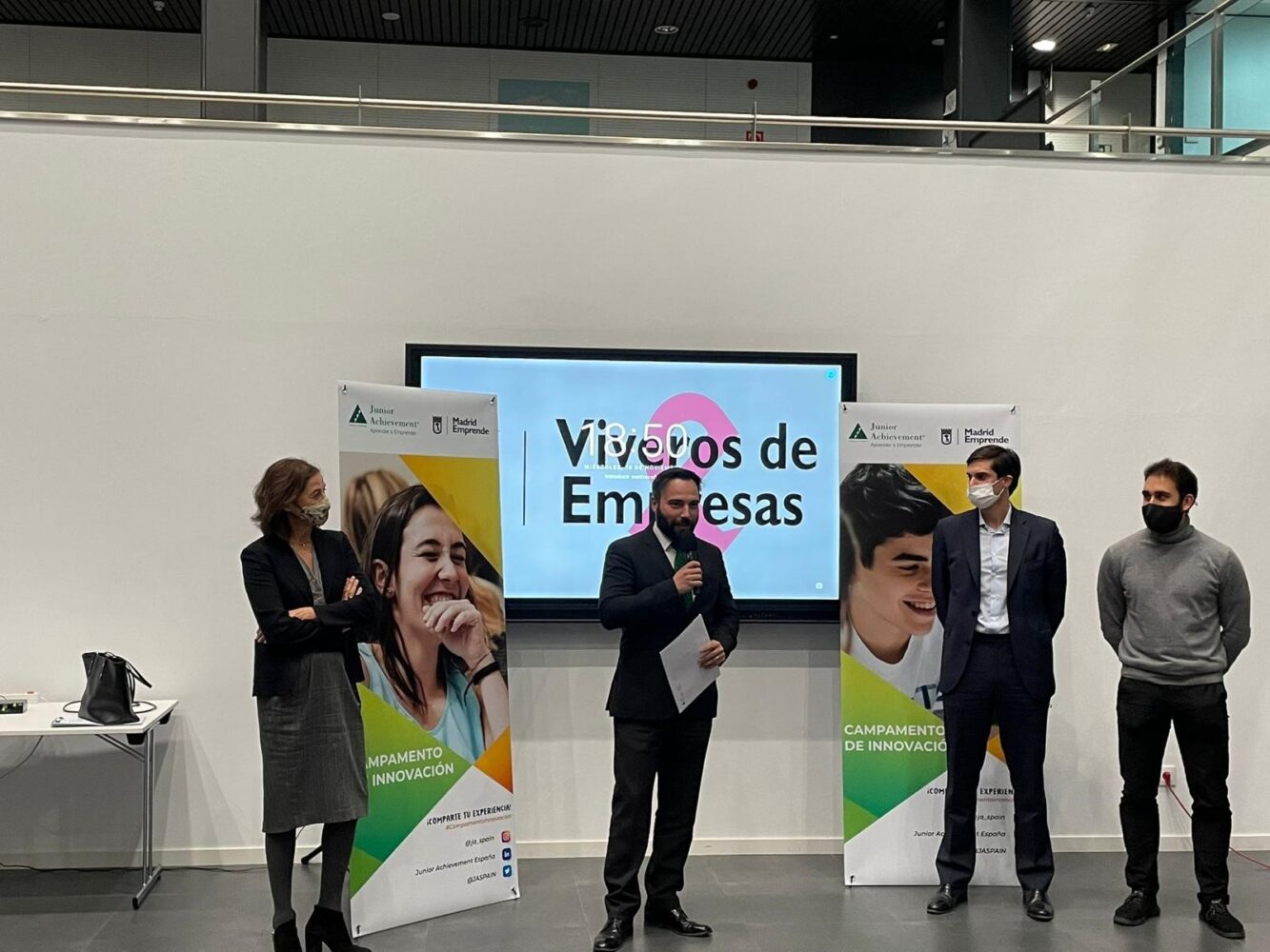 El concejal delegado de Innovación y Emprendimiento, Ángel Niño, ha participado esta tarde en la clausura de la jornada Campamento de Innovación, que se ha celebrado en el Vivero Municipal de Empresas de Carabanchel. Se trata de un programa educativo de la Fundación Junior Achievement España dirigido a estudiantes de secundaria, bachillerato, FP y universidad que tiene como objetivo fomentar el espíritu emprendedor y desarrollar competencias creativas para innovar en los alumnos.