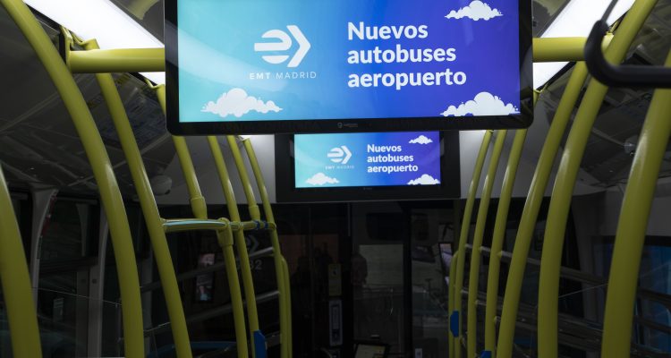 Esta nueva generación de autobuses de GNC, una flota total de 17 nuevos vehículos para conectar Madrid con el Aeropuerto Adolfo Suárez Madrid–Barajas, es un ejercicio de innovación de la Empresa Municipal de Transportes junto con el fabricante sueco Scania y el carrocero Castrosúa. Una de las novedades más llamativas es, como ha explicado Carabante, que los nuevos vehículos van dotados de pantallas LED de información y señalización exterior. Las dos primeras ventanas del lateral derecho del autobús llevan grandes pantallas que podrán ser utilizadas para anunciar el destino a los viajeros, algo de especial importancia en la línea Exprés Aeropuerto.