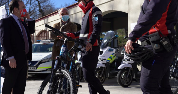 A partir de hoy, los agentes de movilidad están mejor equipados. Para que puedan desempeñar sus funciones en las mejores condiciones, el Área de Medio Ambiente y Movilidad ha adquirido nuevo material: 60 cascos de bicicleta inteligentes y 11 bicicletas eléctricas. Para conocer de primera mano las características técnicas de estos protectores de cabeza y los nuevos vehículos, el delegado Borja Carabante ha visitado esta mañana las instalaciones del cuerpo en Casa de Campo.