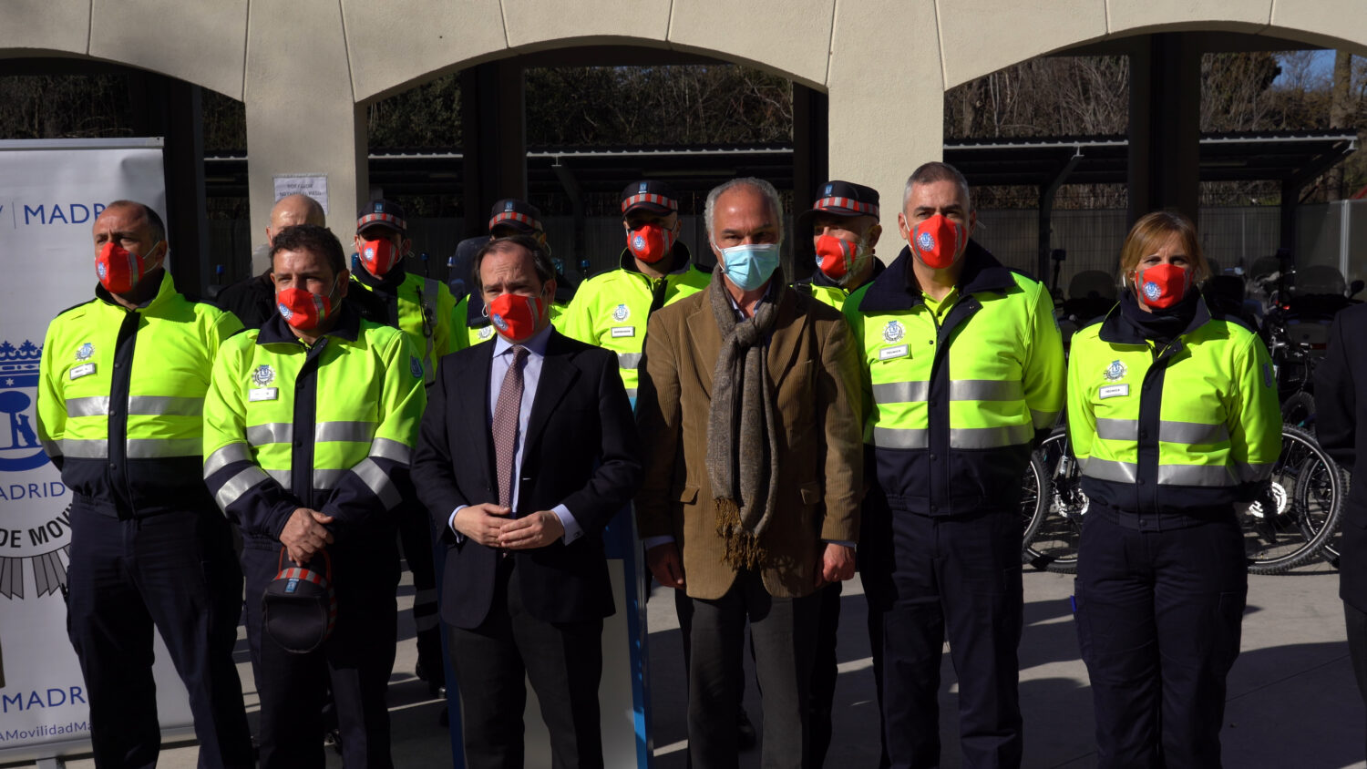A partir de hoy, los agentes de movilidad están mejor equipados. Para que puedan desempeñar sus funciones en las mejores condiciones, el Área de Medio Ambiente y Movilidad ha adquirido nuevo material: 60 cascos de bicicleta inteligentes y 11 bicicletas eléctricas. Para conocer de primera mano las características técnicas de estos protectores de cabeza y los nuevos vehículos, el delegado Borja Carabante ha visitado esta mañana las instalaciones del cuerpo en Casa de Campo.