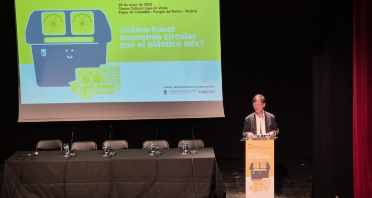 La actividad, promovida desde el Parque Tecnológico Valdemingómez y celebrada en el Centro Cultural Casa de Vacas, busca profundizar en la gestión para incrementar sus porcentajes de recuperación, reciclaje y valorización. En este sentido, Páramo ha señalado que los plásticos están presentes en nuestro día, con el ejemplo de que, “en 2024, entraron en el Parque Tecnológico de Valdemingómez, 115.800 toneladas, de las que un 58 % eran de plástico film y un 19,1 % pertenecían a otros tipos de plásticos” (PET, PEAD, FILM y Plásticos MIX, incluyendo los plásticos que no son envases).