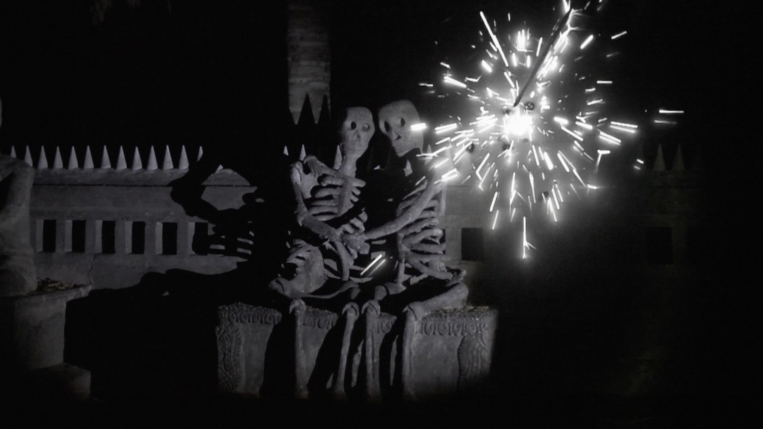 Hacia el final del recorrido, la propuesta invita a perder de vista la cámara (el nombre de la productora del artista es Kick the Machine), para revelar que la proyección se vuelve hacia los espectadores de la muestra, cual nuevos espíritus errantes: como los perros de The Palace, que rondan en el espacio expositivo, entramos a poblar sus filmes.