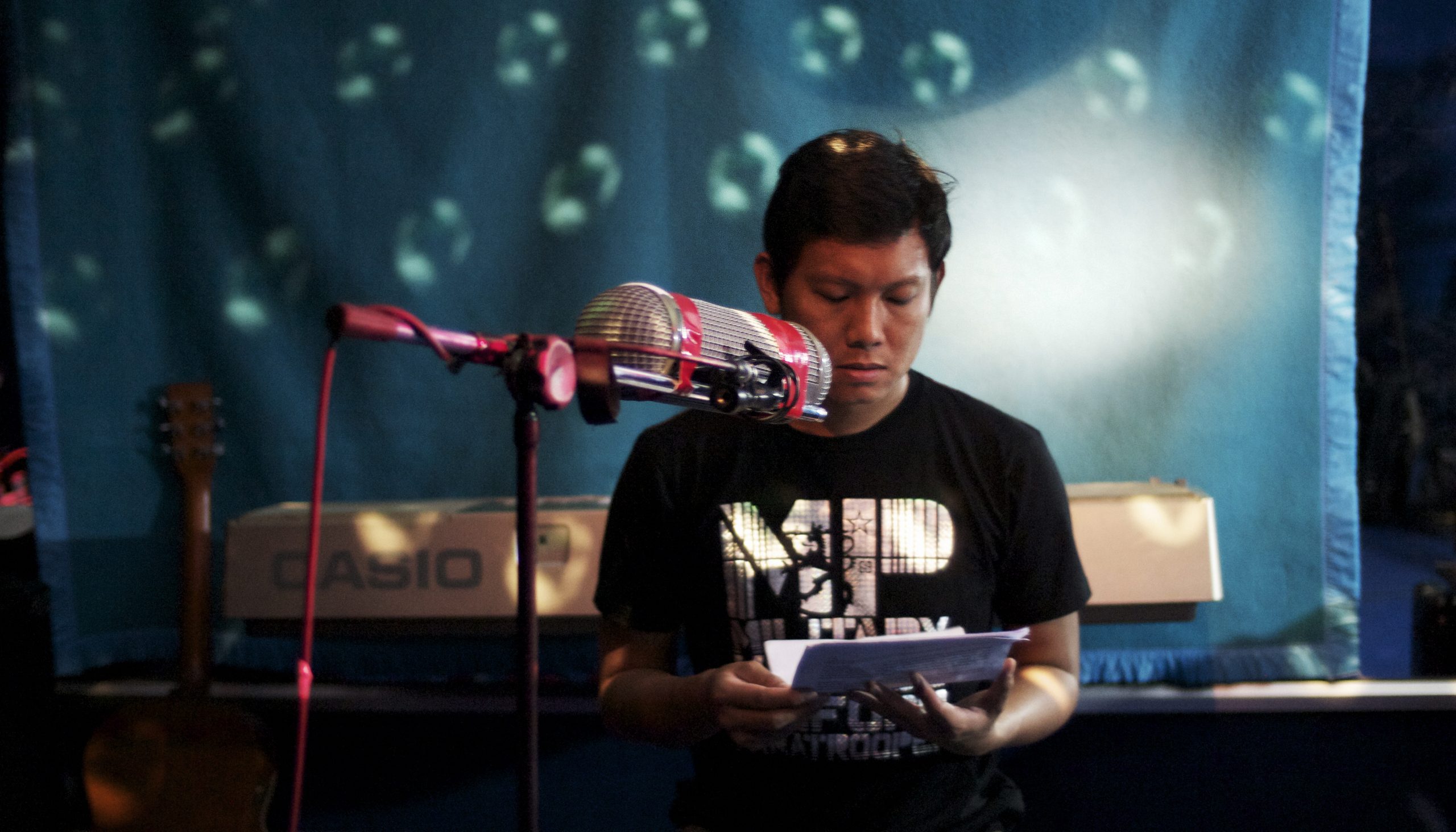 La entrada a la exposición es toda una declaración de intenciones, un Haiku donde la memoria de su país tiñe los sueños de un grupo de adolescentes, sintetizando el universo fílmico del autor. Después de este portal, la exposición entra en la intimidad creativa del cineasta: entre la poética plástica de Sakda (Rousseau) y la colorida silueta de Power Boy, se abre el laboratorio documental de sus Video Diaries, pequeñas pinceladas de sus intereses y restos de rodajes.
